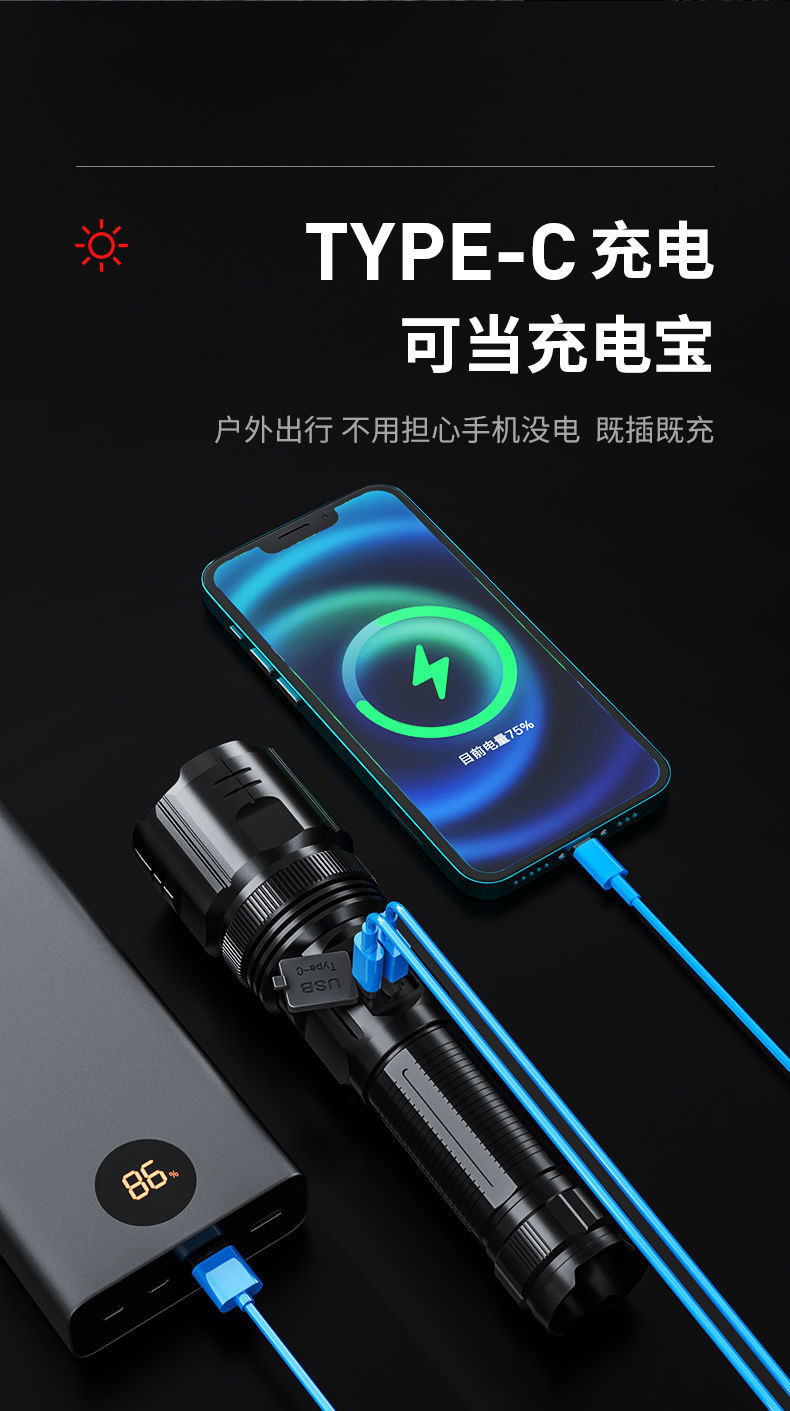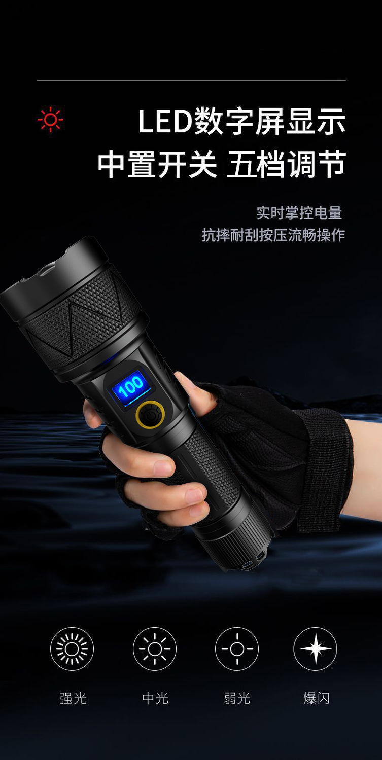 磁気吸引p50強光懐中電灯携帯ズーム夜釣り電力量表示usb充電屋外懐中電灯新製品