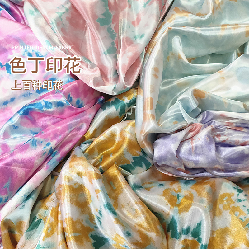 非弾性グラデーションサテンプリント生地絞り染めシルクサテン衣類裏地帽子リボンテキスタイル生地サテン