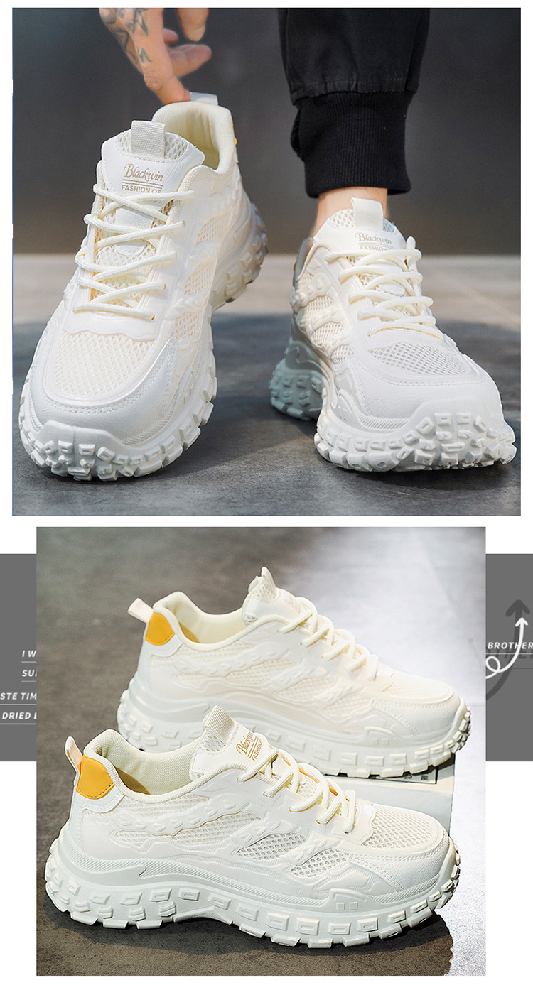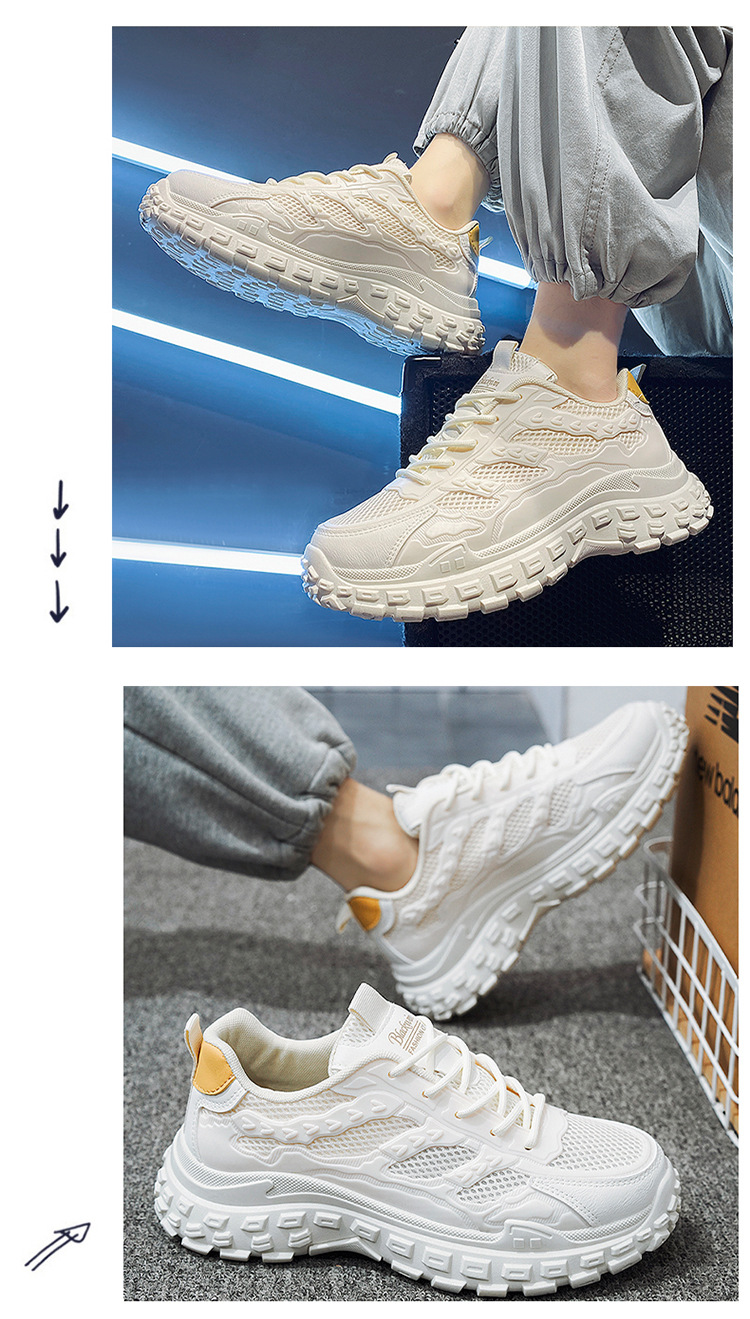 男の靴の新型の夏の通気性の爆発の厚い底は小麦の色のレジャーの靴の男のネットの赤い上昇の運動の板の靴を合わせます。