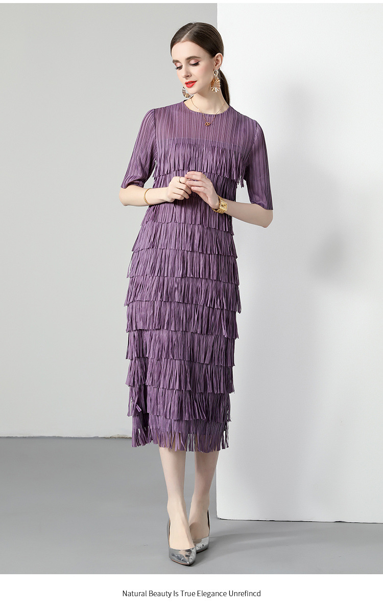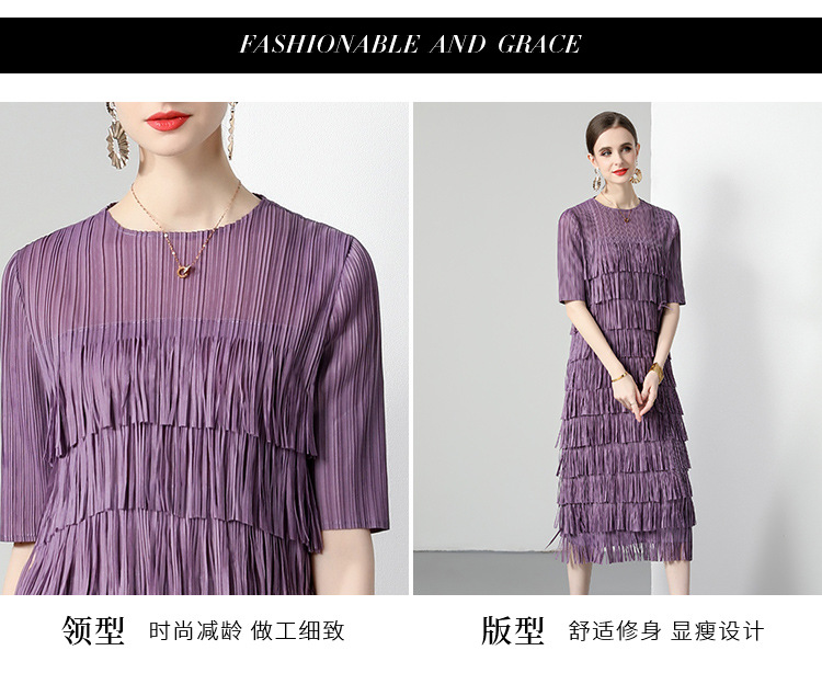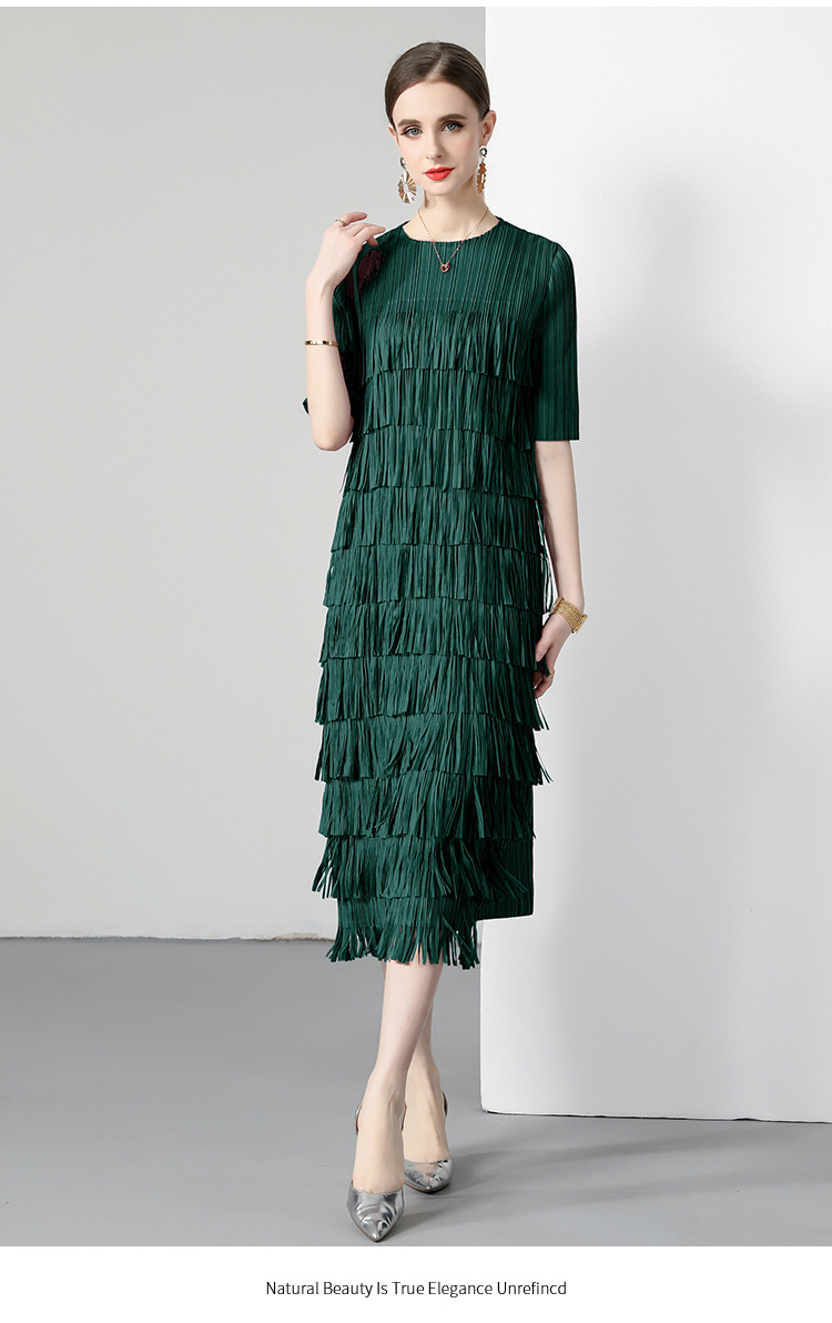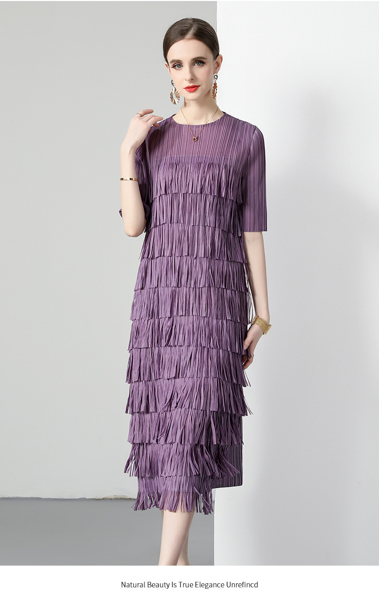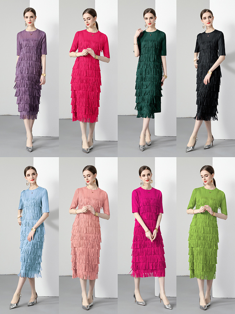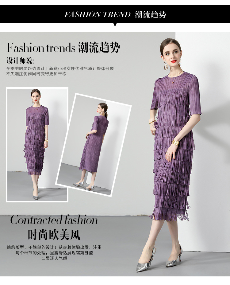 三宅純色シワワンピース夏ファッション着痩せ高級感フリンジロングスカート弾力大きいサイズ婦人服スカート