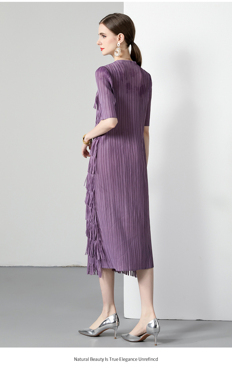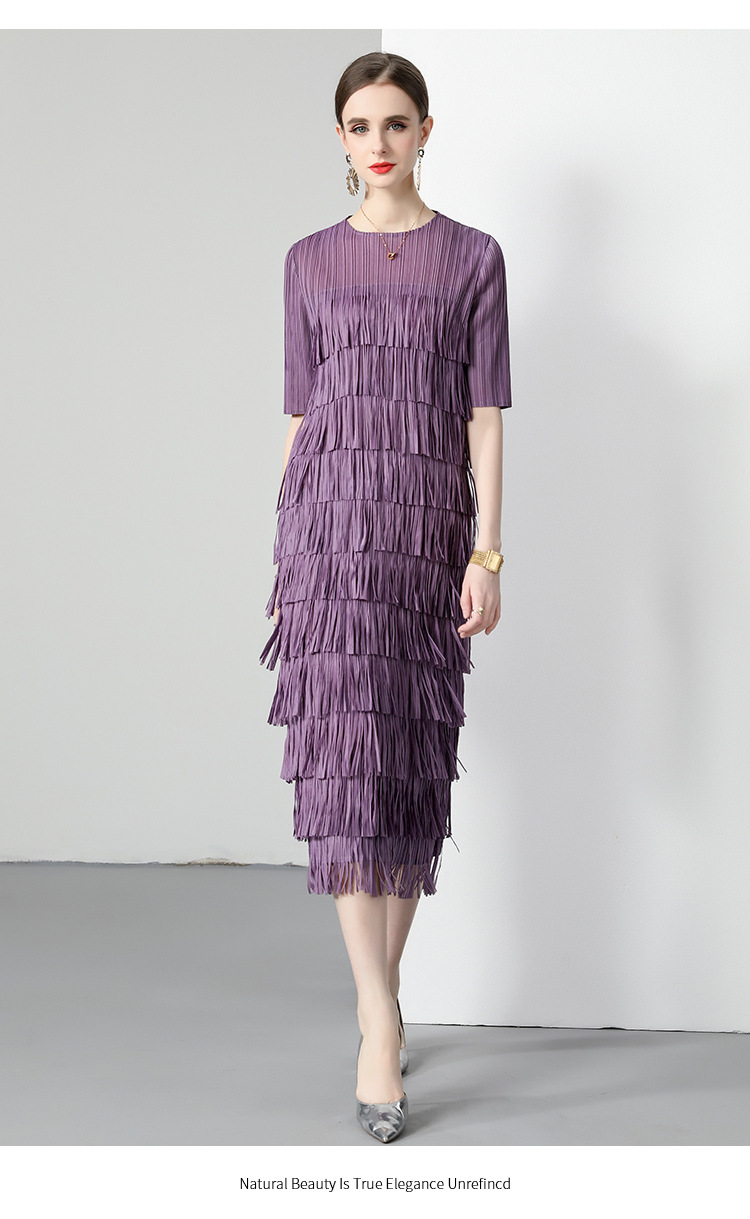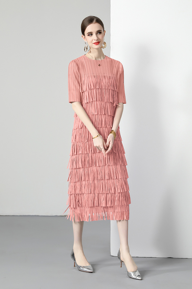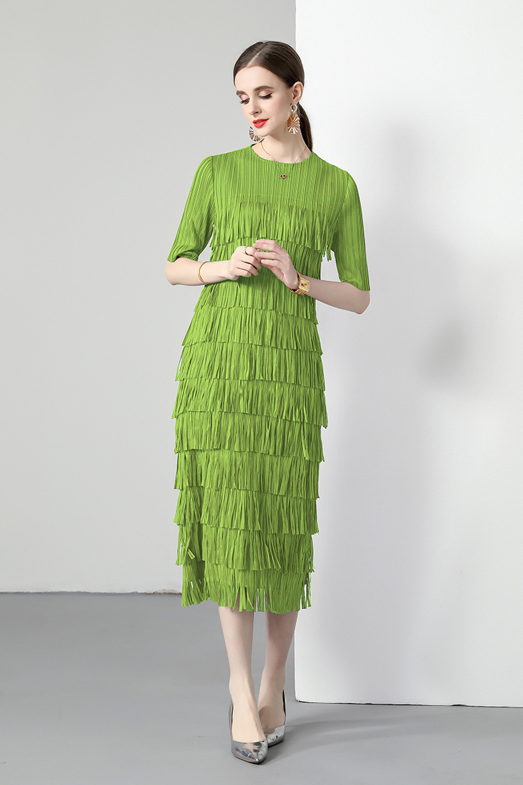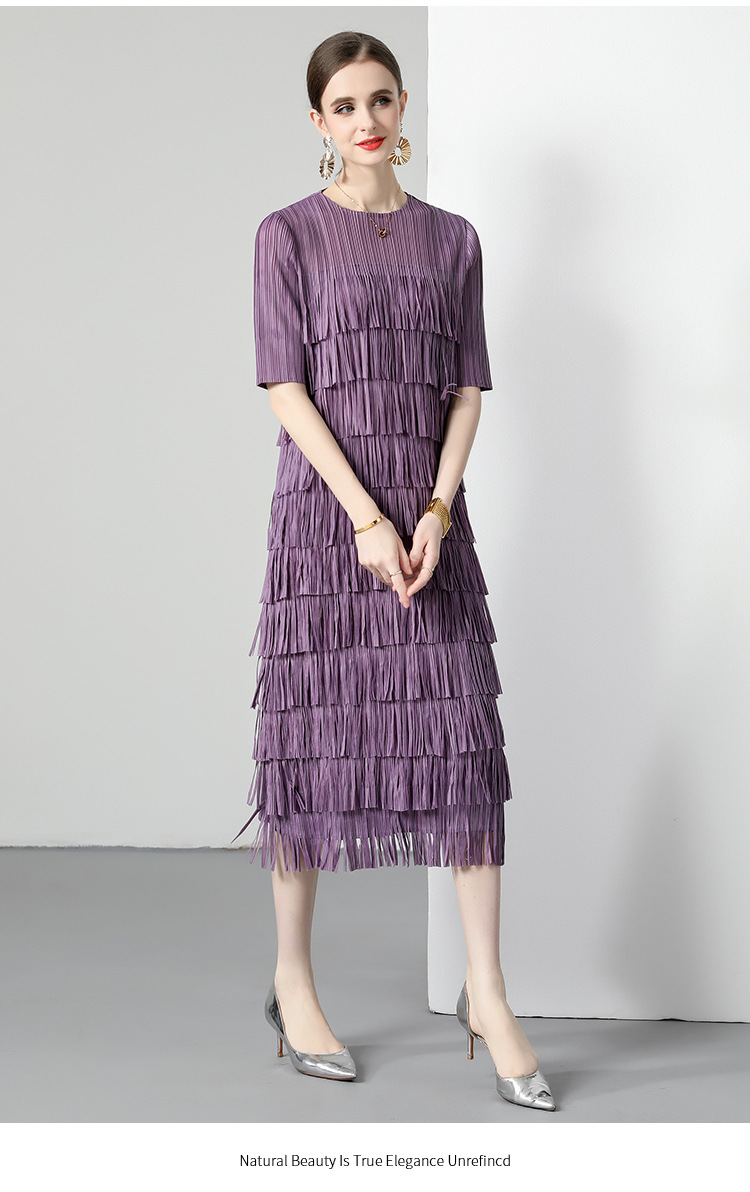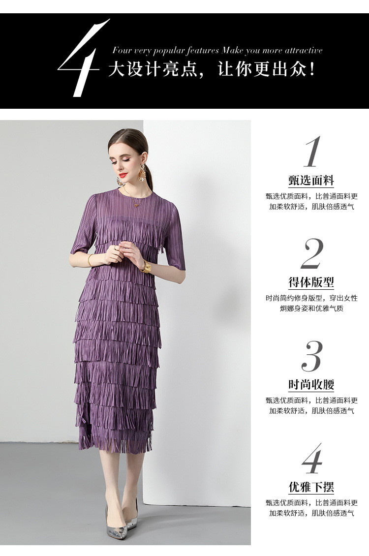 三宅純色シワワンピース夏ファッション着痩せ高級感フリンジロングスカート弾力大きいサイズ婦人服スカート