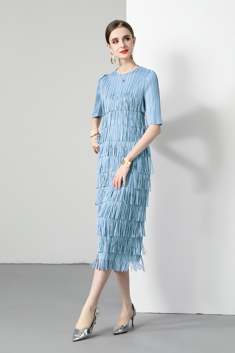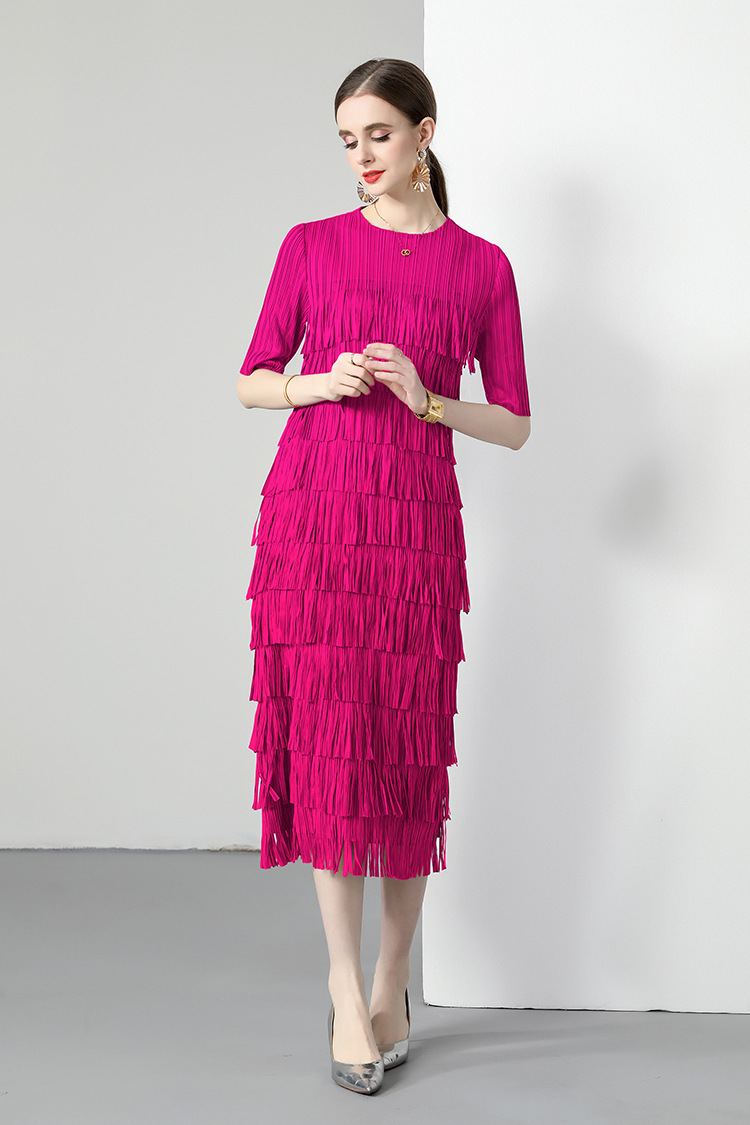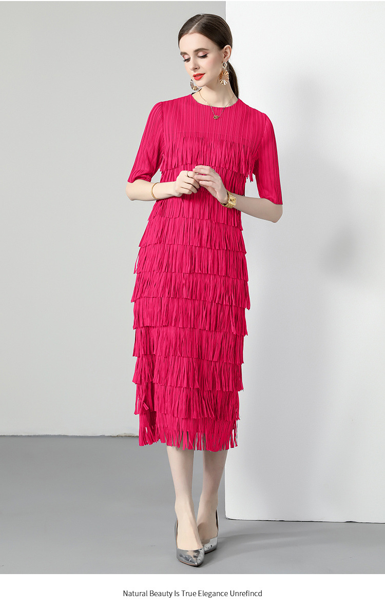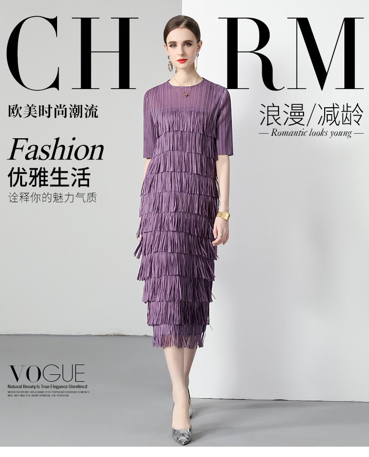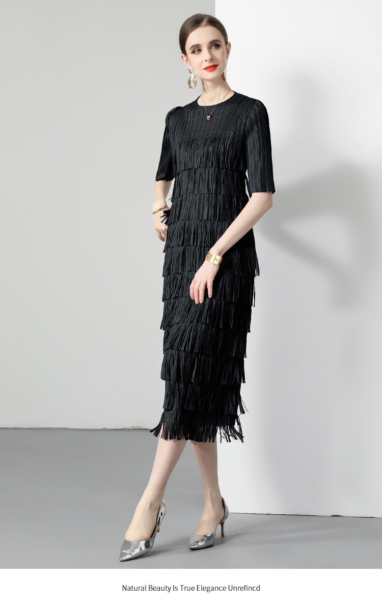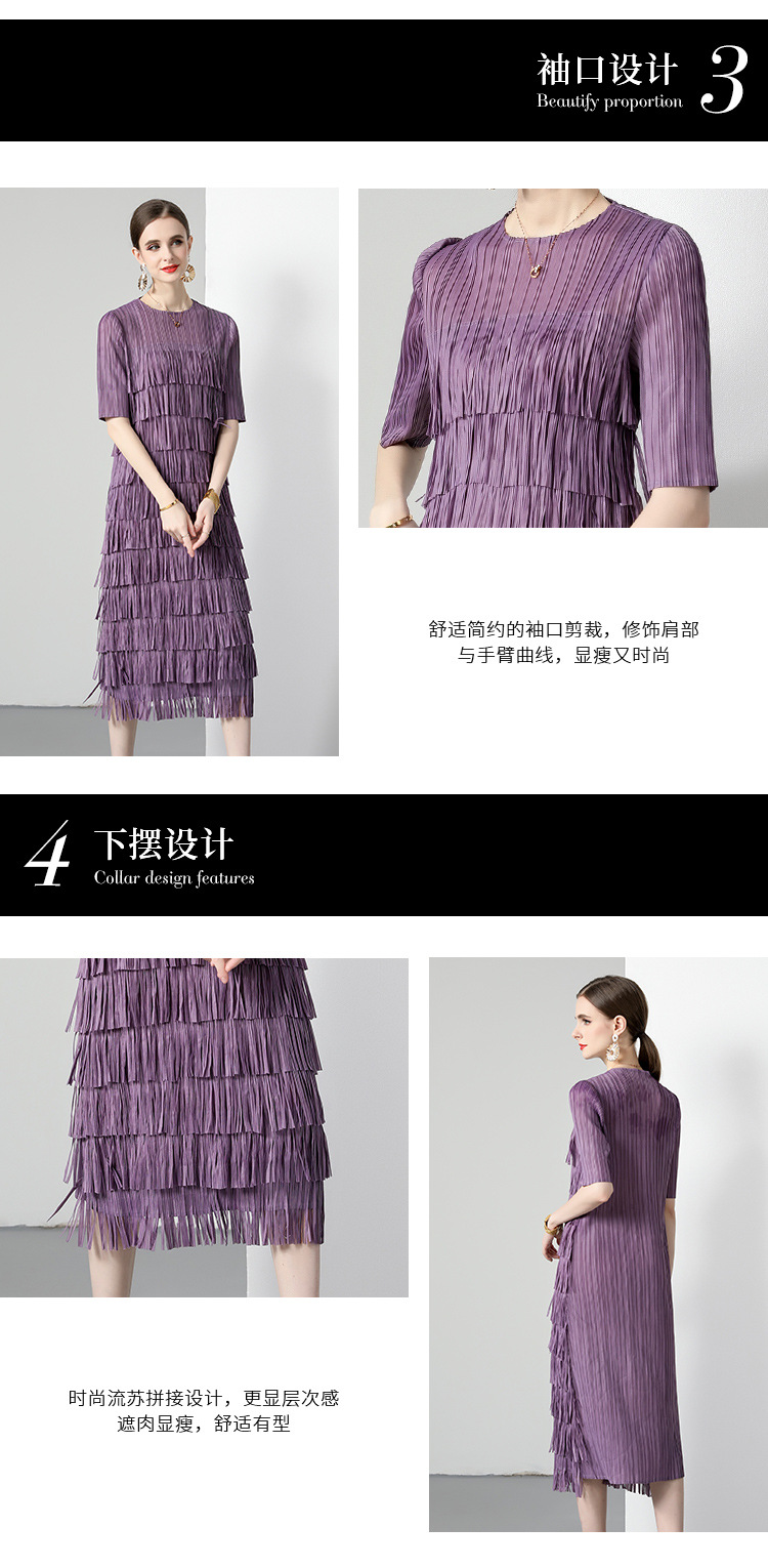 三宅純色シワワンピース夏ファッション着痩せ高級感フリンジロングスカート弾力大きいサイズ婦人服スカート