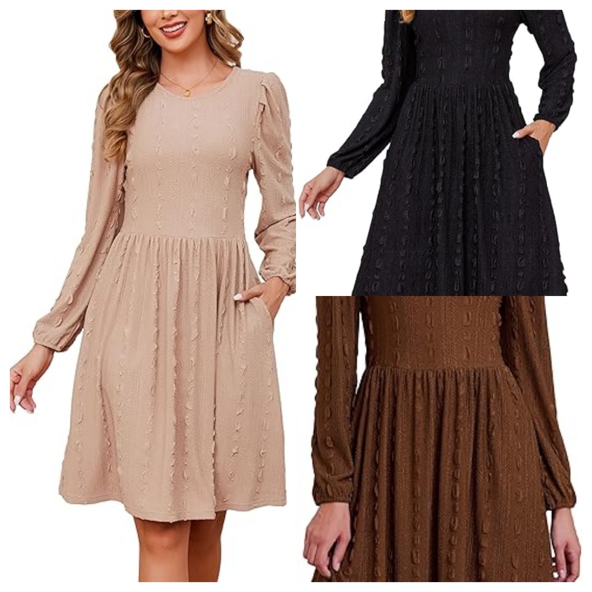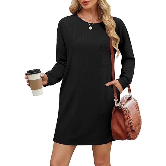 クロスボーダー女性カジュアル丸首長袖ニットセーターワンピース