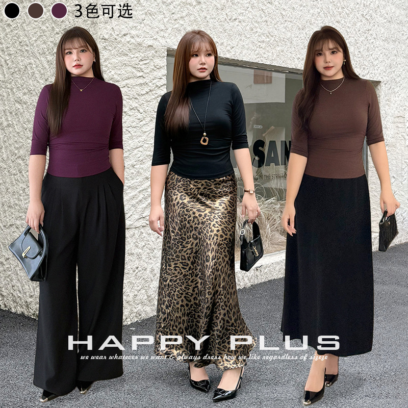 高智姐感莫代尔中袖针织衫润其9309大码法式辣妹秋职场极简半高领