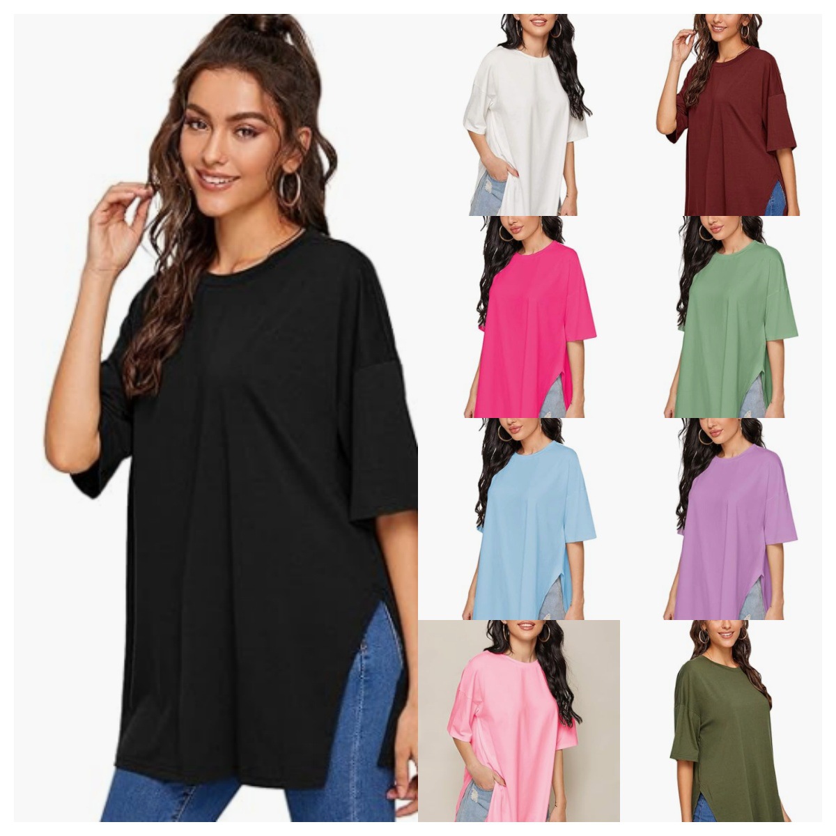 欧米の純色のゆったりした丸首の上着のクロスボーダーtシャツアマゾンの大きいサイズの婦人服の上着の丸首の大きいサイズの婦人服のtシャツ