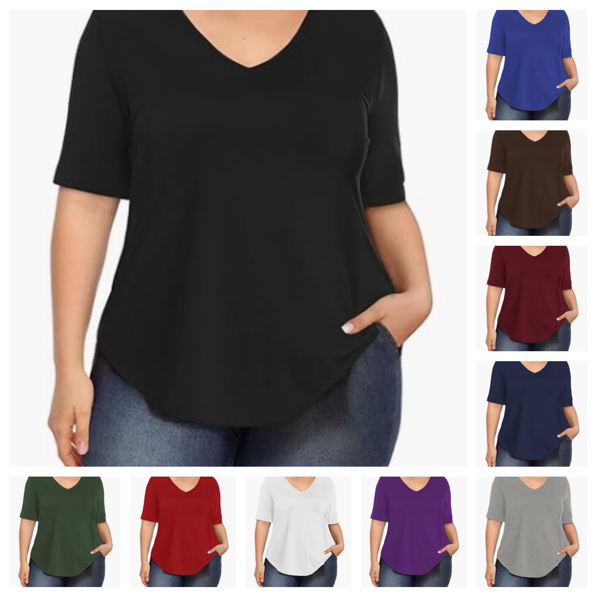 2024欧米の国境を越えたアマゾンの対外貿易の夏の大きいサイズの婦人服の上着のvネックのカジュアルな半袖のt