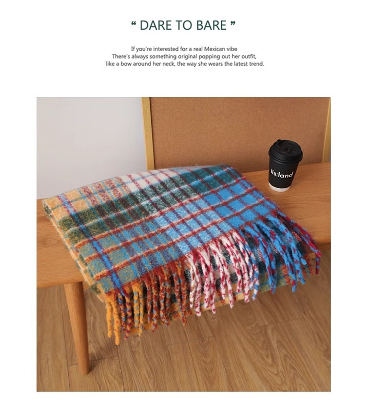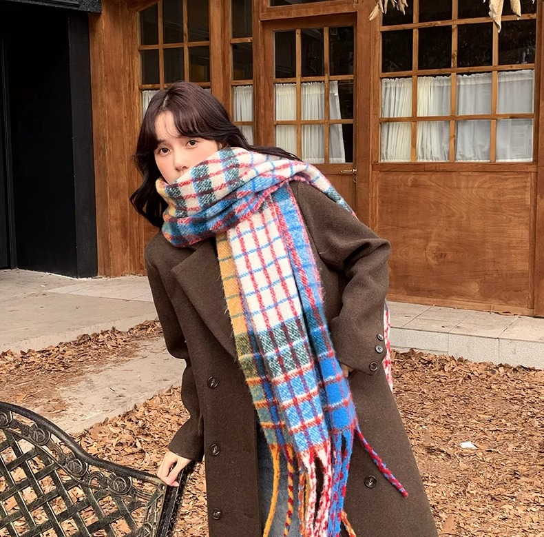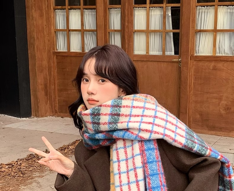 2025年冬用レディーススカーフ、韓国風、多用途、秋用、イミテーションカシミヤ、格子柄、厚手、暖かい、学生、カップル、ショール