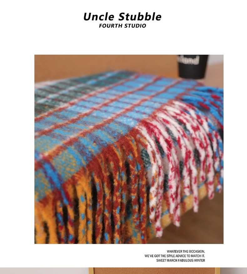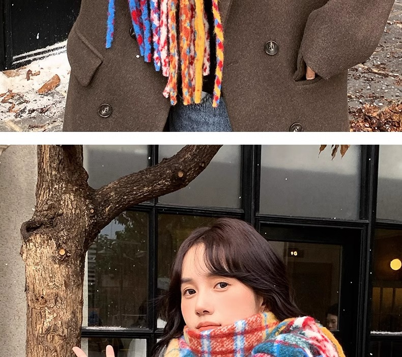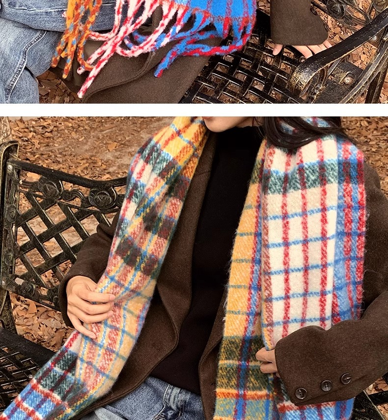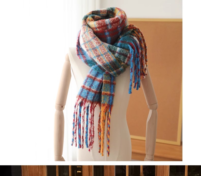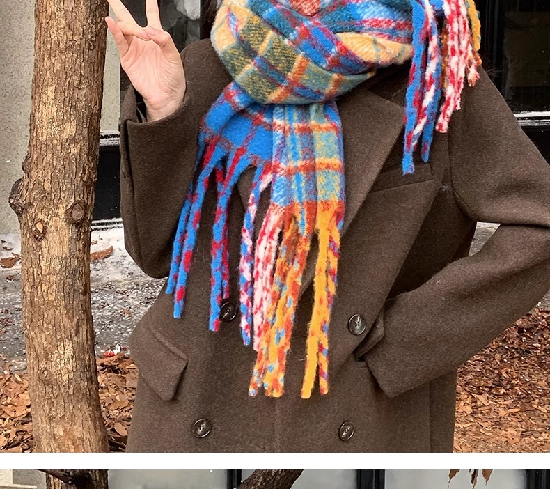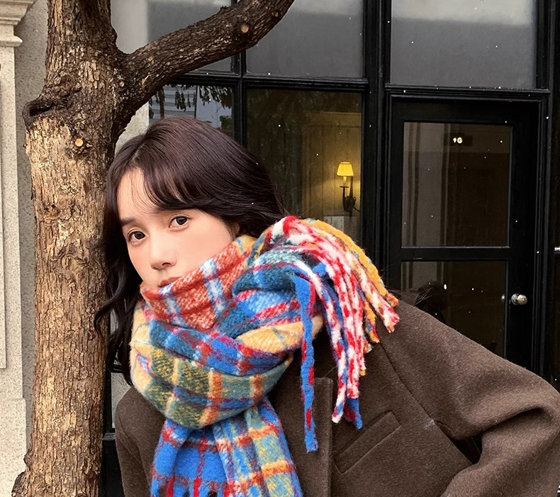 2024冬のマフラーは男女のカラー格子のフリンジカップルが首を囲んで厚くして保温します。