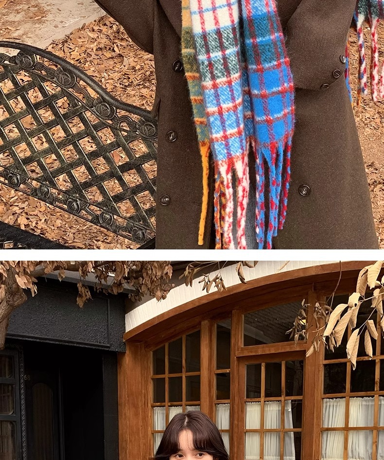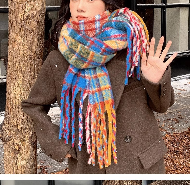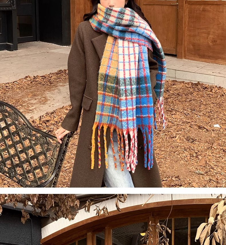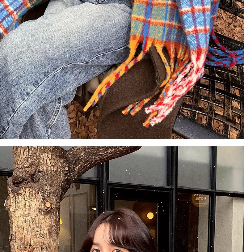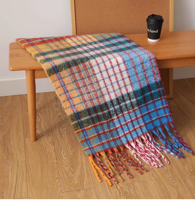 2024冬のマフラーは男女のカラー格子のフリンジカップルが首を囲んで厚くして保温します。