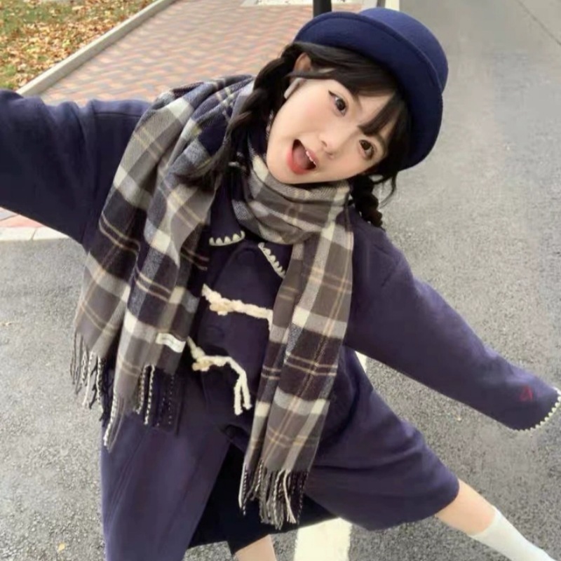 日系仿羊绒格纹围巾女韩版秋冬学生百搭长款围脖保暖披肩两用休闲