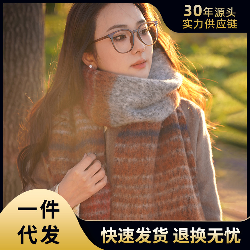韓国egg馬海毛挟みマフラー女性冬の柔らかいモチモチ毛糸ニット保温厚いマフラー学生ins潮