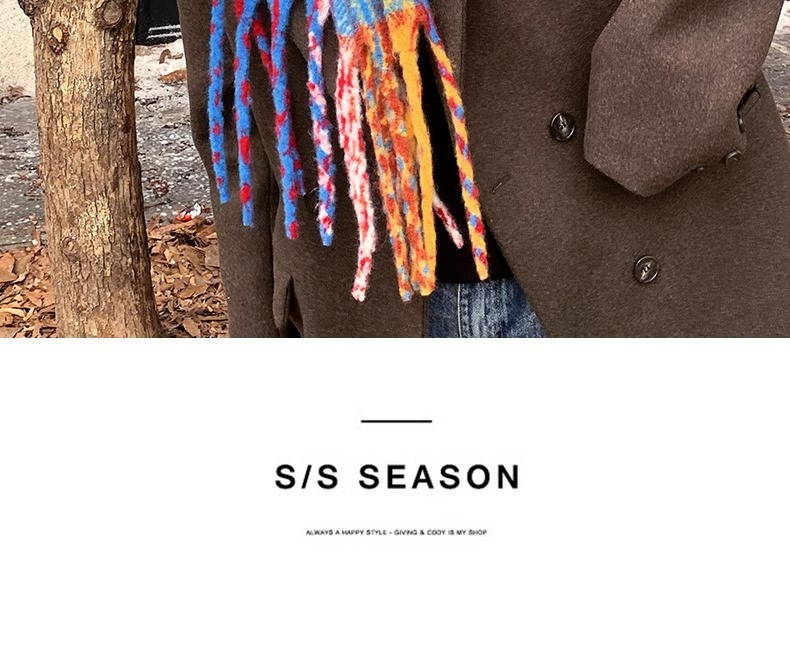 ツートンカラーのスカーフ 2025秋冬 韓国版 新作 イミテーションカシミヤ フリンジ付き 保温 メンズ カラーブロック スカーフ レディース