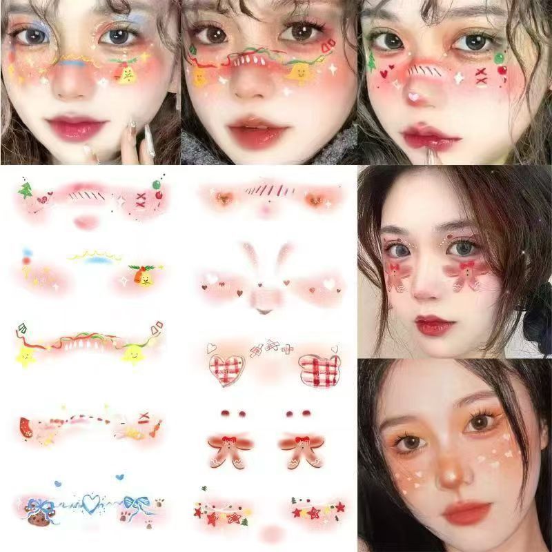 跨境新品圣诞节妆容眼角脸贴高级感可爱卡通面部装饰临时纹身贴纸