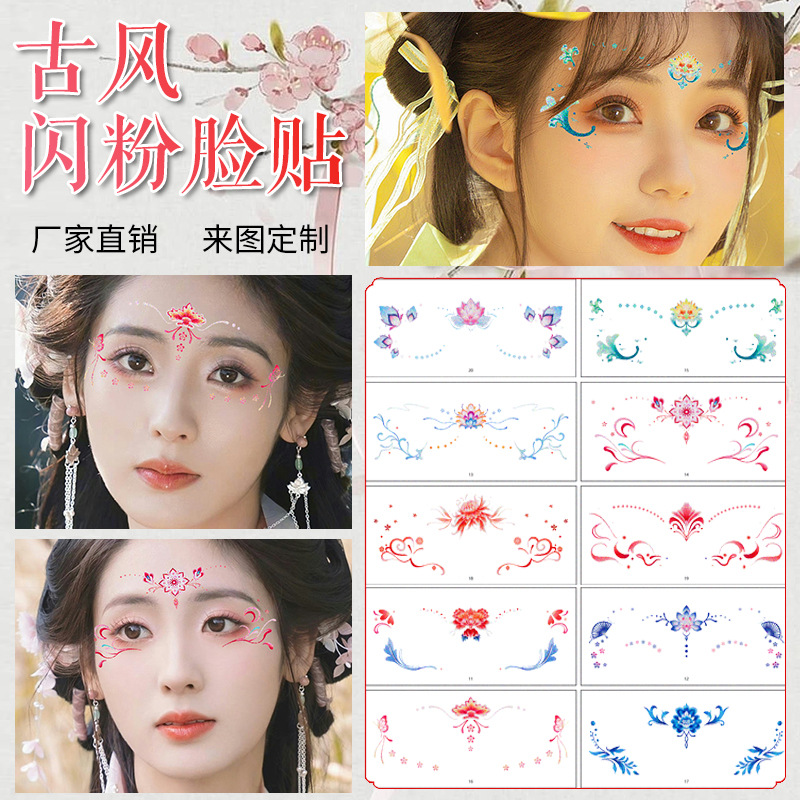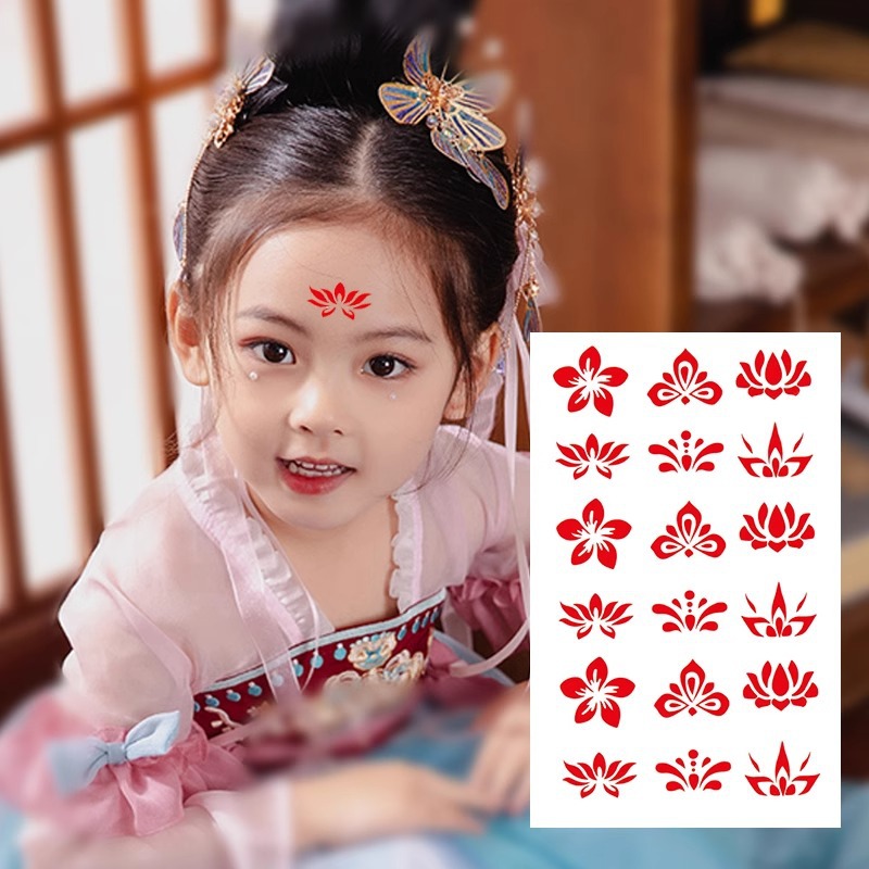 卸売眉毛ステッカー子供のタトゥーステッカー漢服古代スタイル額ステッカー印刷古代衣装花一時的なタトゥーステッカー