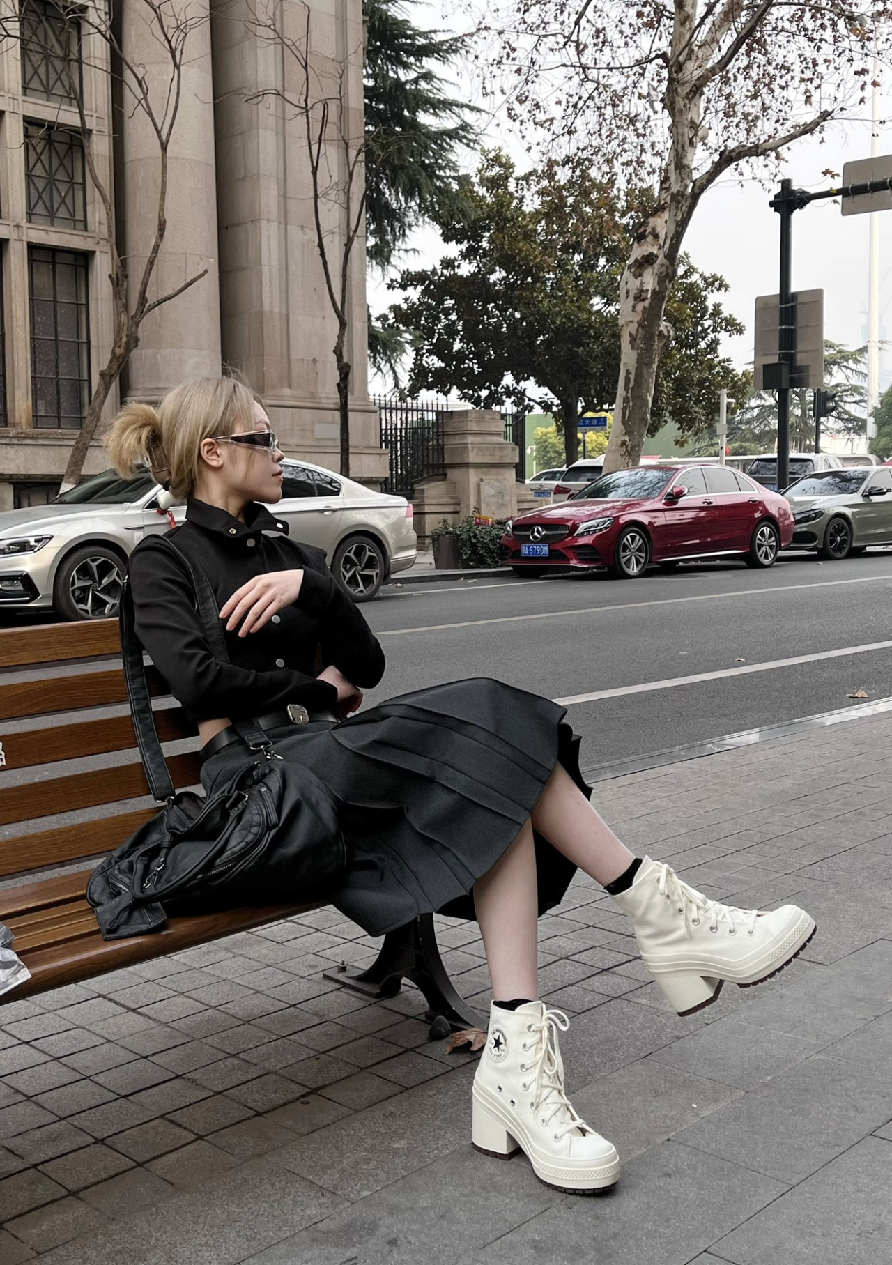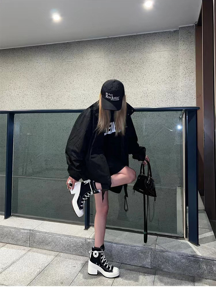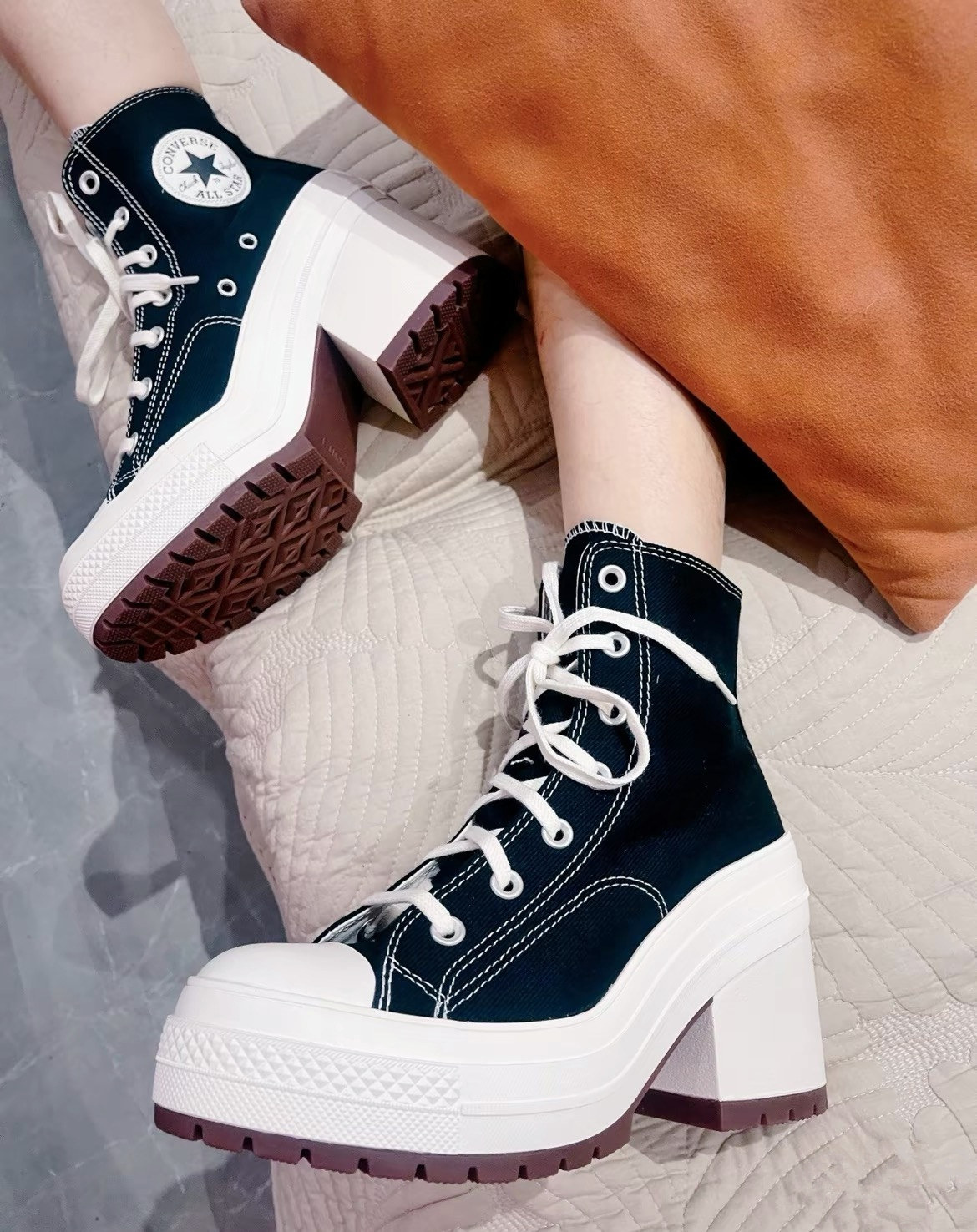 レトロハイヒール厚底キャンバスシューズ女性用 2025 新しいラウンドトゥレースアップ多用途厚底ハイトップシューズ白靴