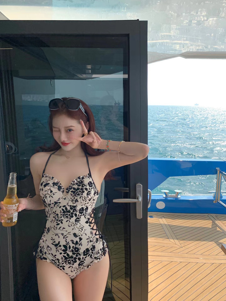 ネットセレブ人気の小さな愛のスチールサポートが胸を押し上げるシンプルなワンピースサスペンダー水着女性用温泉休暇水着