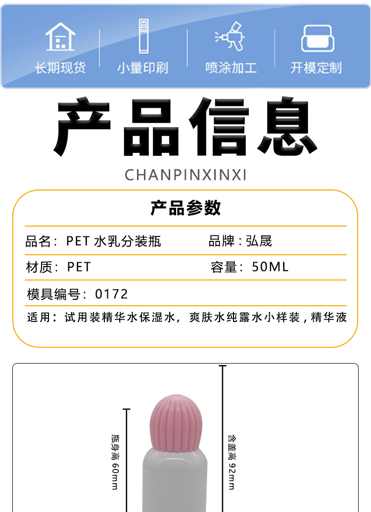 卸売り50mlの試作品は保湿水の精華の水の瓶を詰めます。