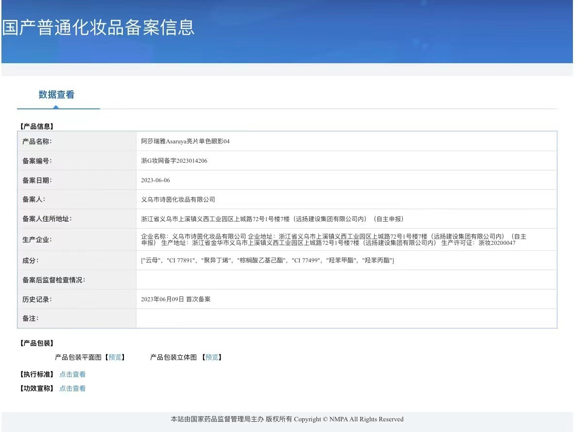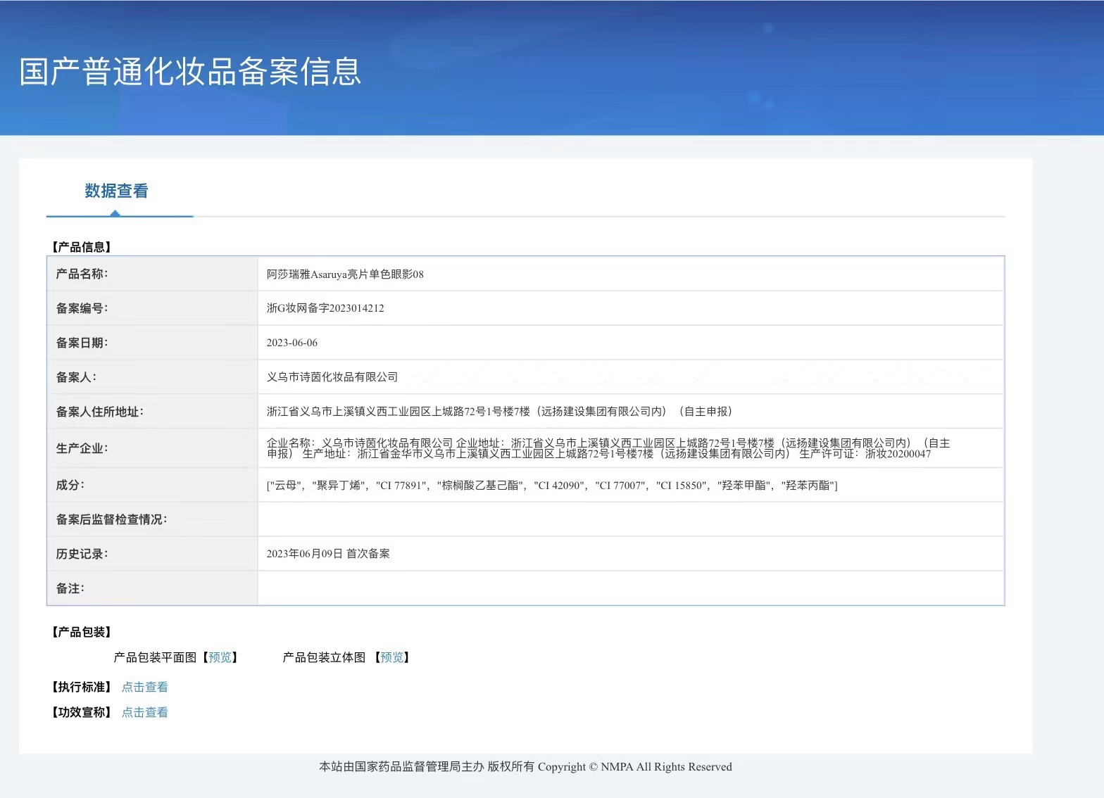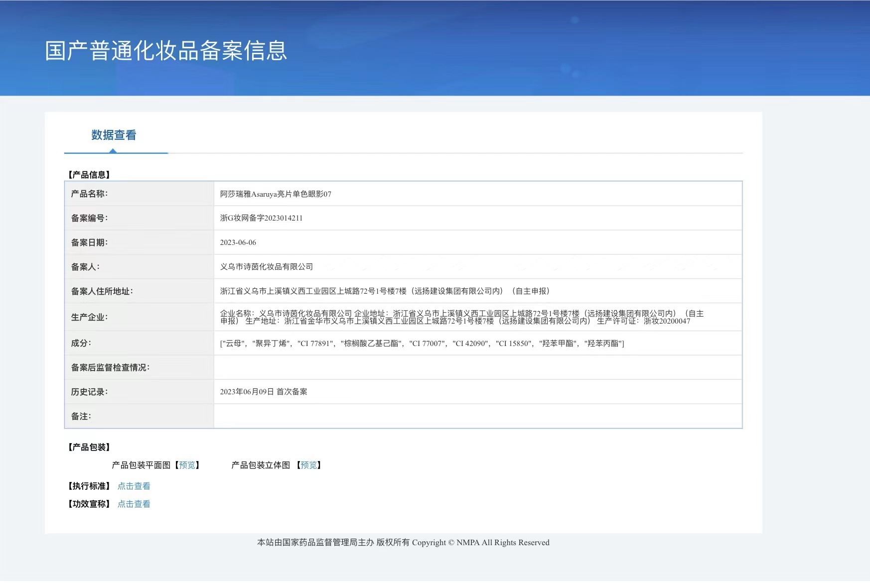 【全色系登録】阿莎瑞雅単色大亮片アイシャドー