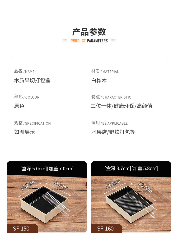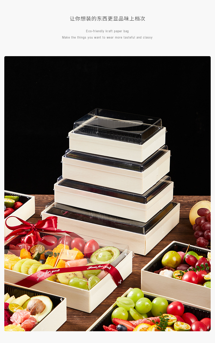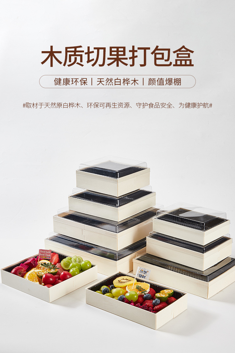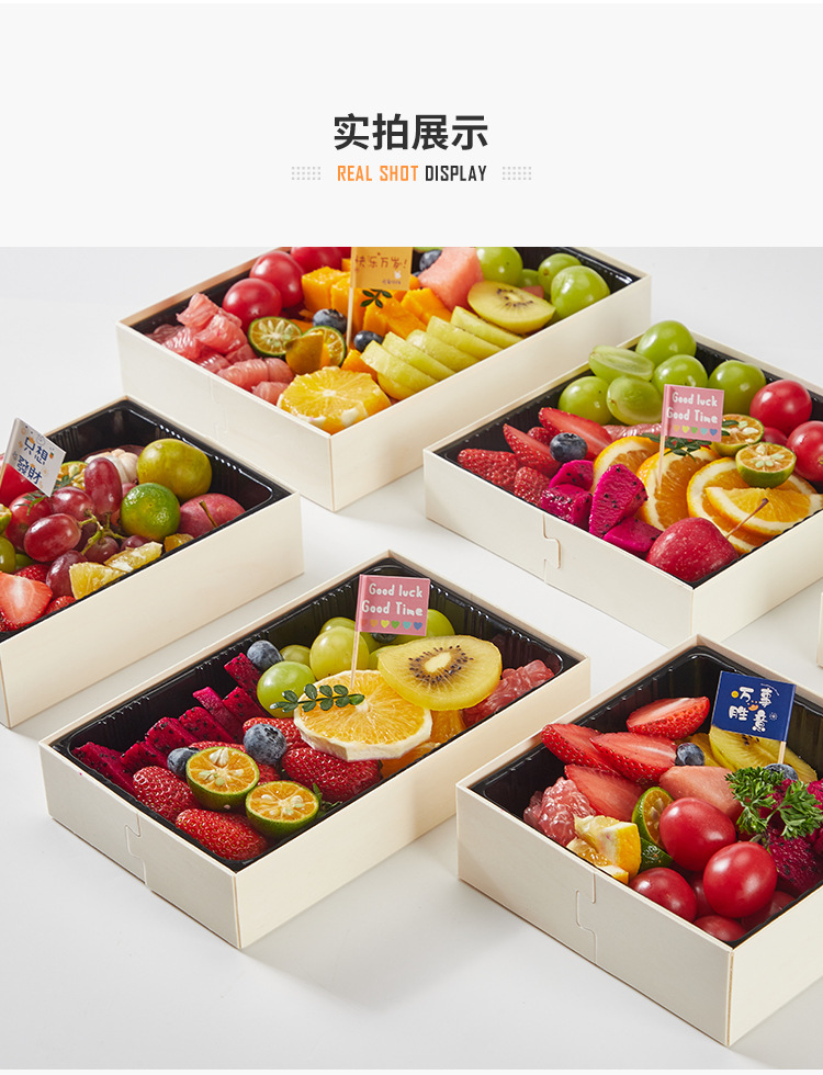 木製フルーツカットボックス、フルーツ包装箱、梱包箱、盛り合わせテイクアウトボックス、生鮮カット木箱