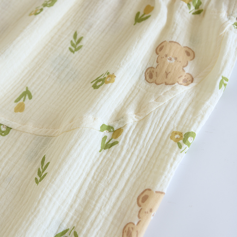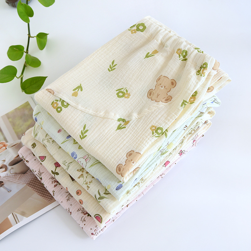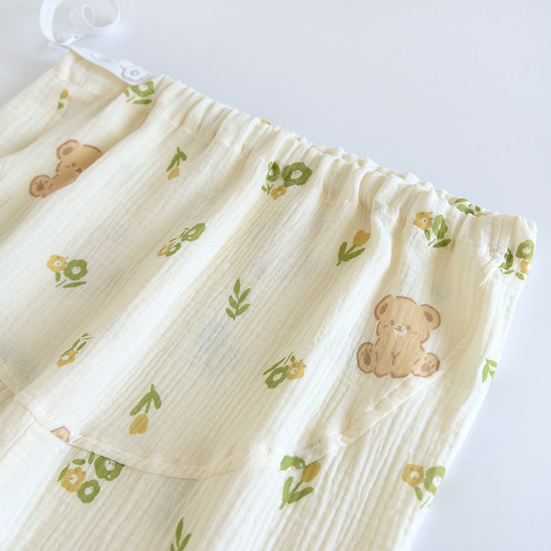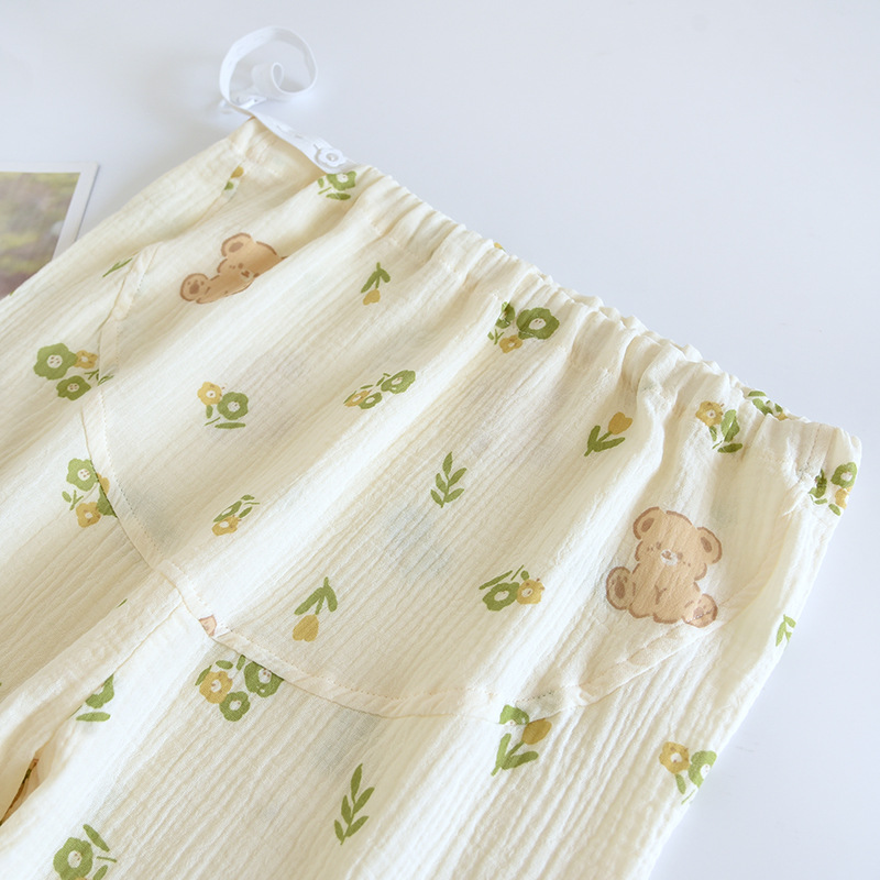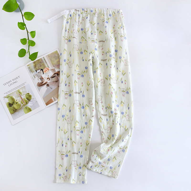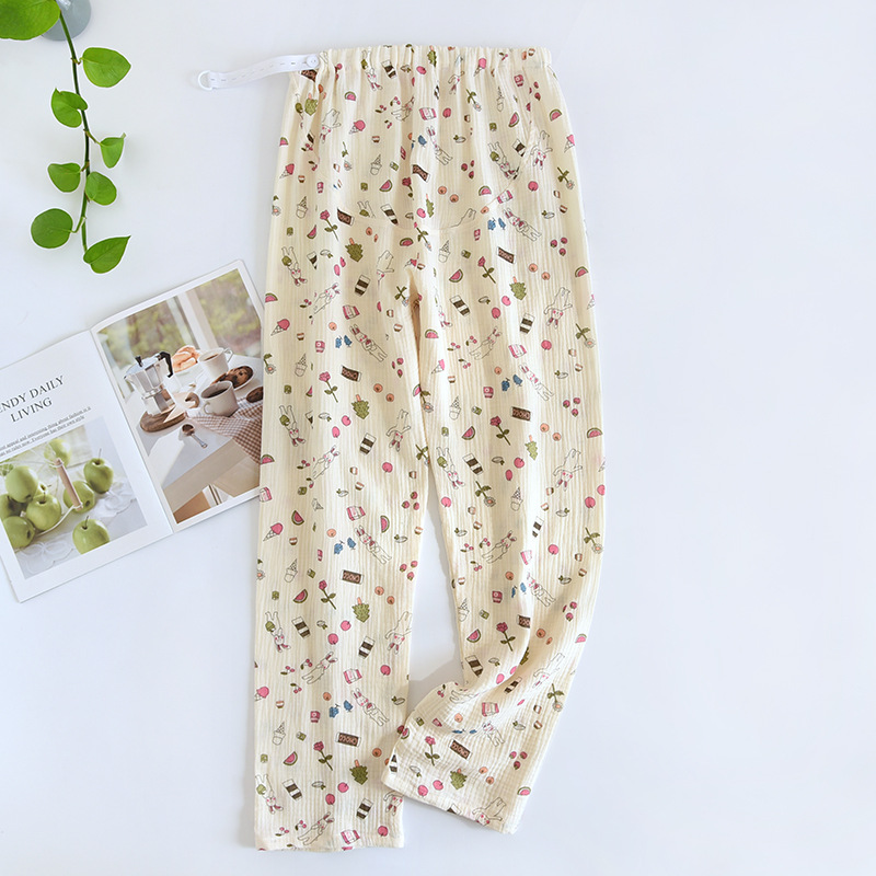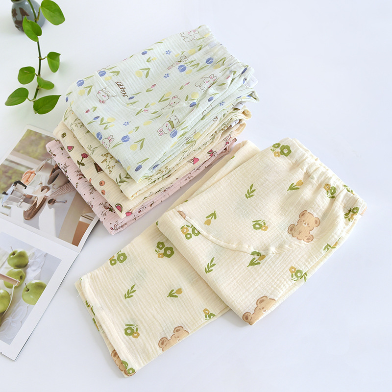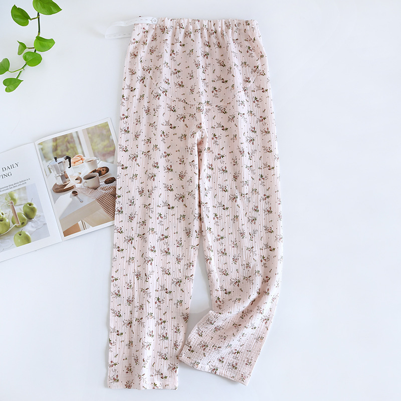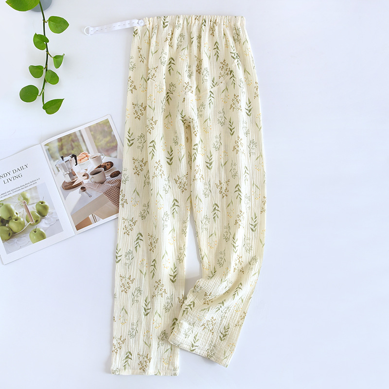 春と秋の夏の純綿の色はレトロなジャカードの寝ズボンの女性のガーゼの口の家庭のお母さんのズボンを編みます。
