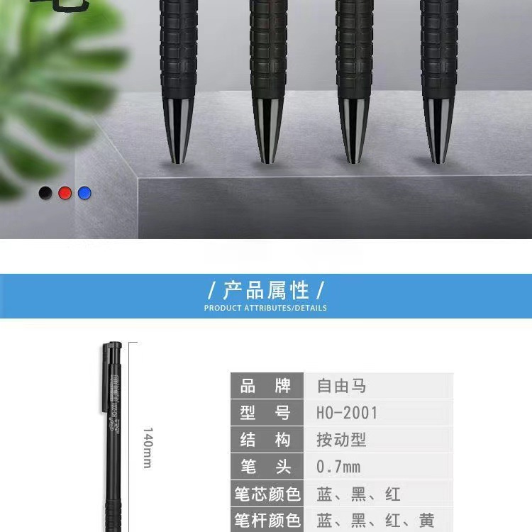 自由な馬のボールペンの卸し売りho-2001は元のボールペンのスプリングペン0.7mmを押しますプラスチック原子ペンを押します