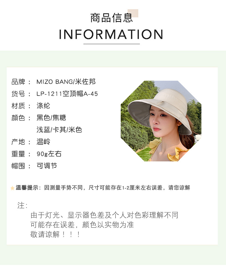 夏の新型大沿布帽子空頂帽子アウトドアレジャー日よけ日焼け止め帽子子供ファッション韓国版メーカー直営