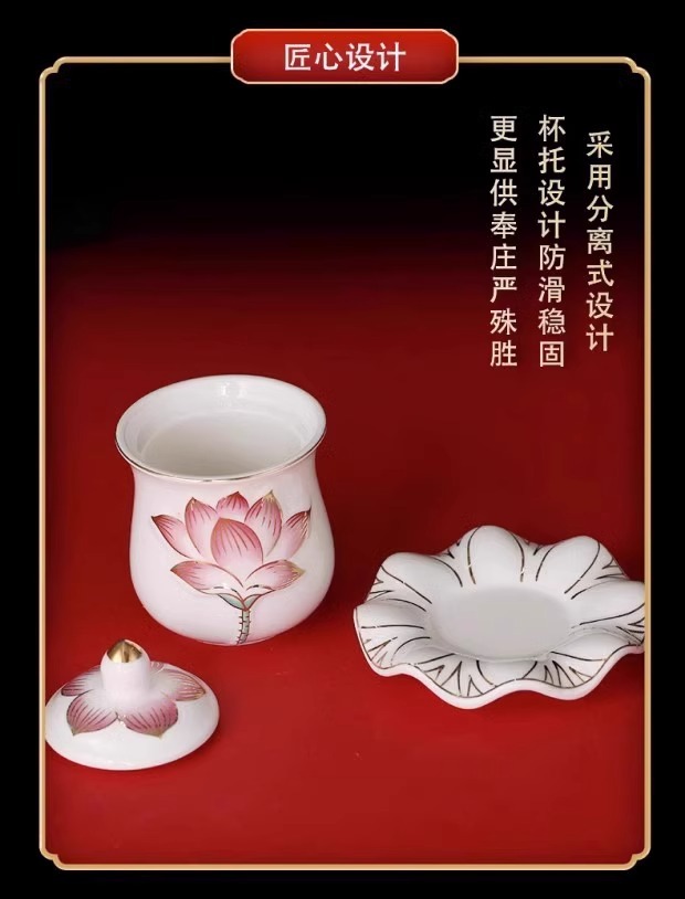陶磁器の給水カップは観音蓮の聖水杯を供えます。
