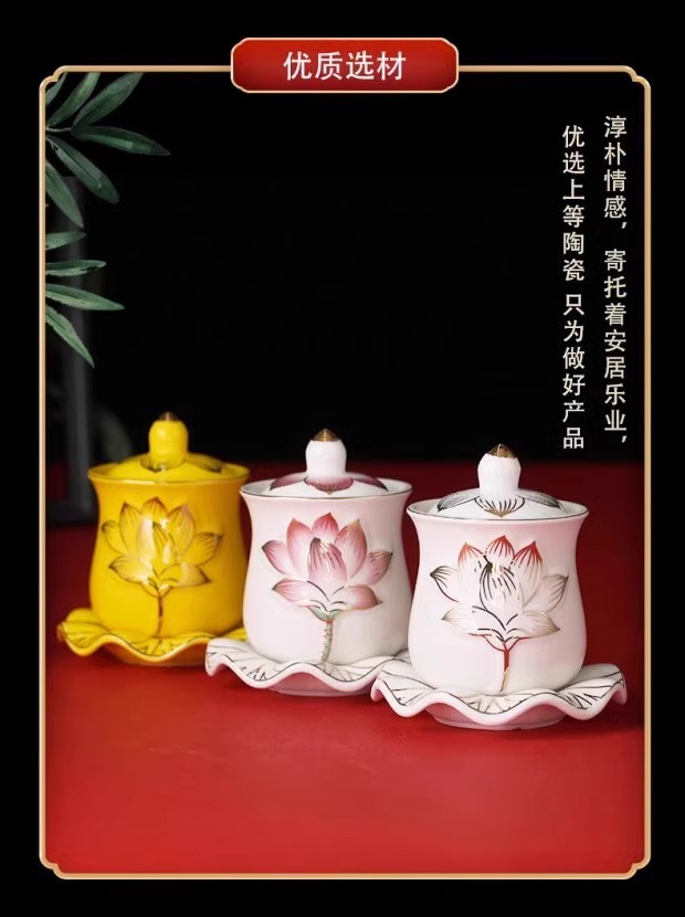 陶磁器の蓮の花のコップの家庭用の給水カップは仏陀の杯の仏陀の前の観音の聖水の杯の仏陀の杯の浄水の杯を供給します。