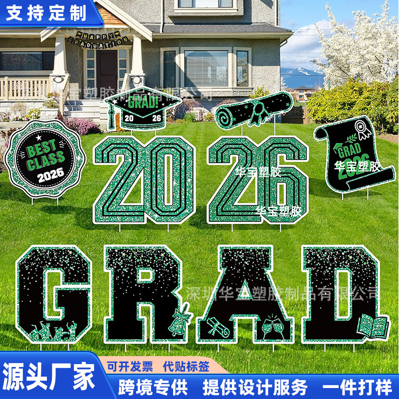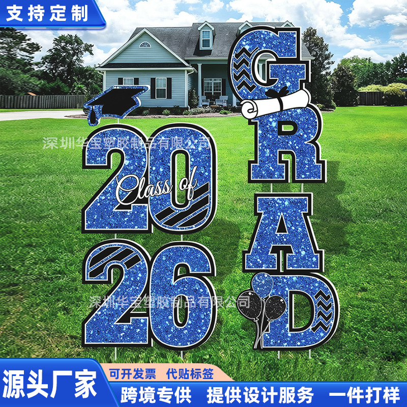 カスタム2025新型黒金大サイズ卒業シーズンの庭の看板卒業式屋外芝生装飾品