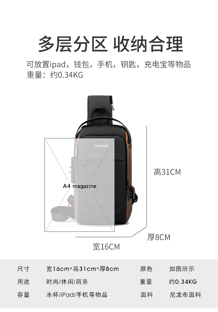 国境を越えたアマゾンの機関車バッグの男性バッグは、胸バッグの香港風潮牌パスワードロック盗難防止スポーツカーバッグの男性バッグです