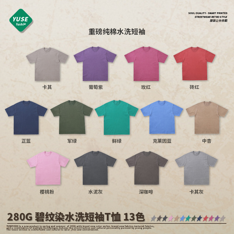 280G碧紋染めウォッシュ加工ヴィンテージ風半袖男女兼用トレンドブランド新作ヘビーウェイトゆったり純綿インナーシャツTシャツカスタム