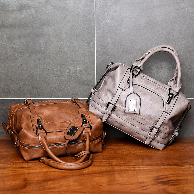 大容量の本革の質感のカバンはクロスボーダーの油蝋皮のボストンバッグの女性カバンのハンドバッグのシングル肩の斜め掛けのカバンです。