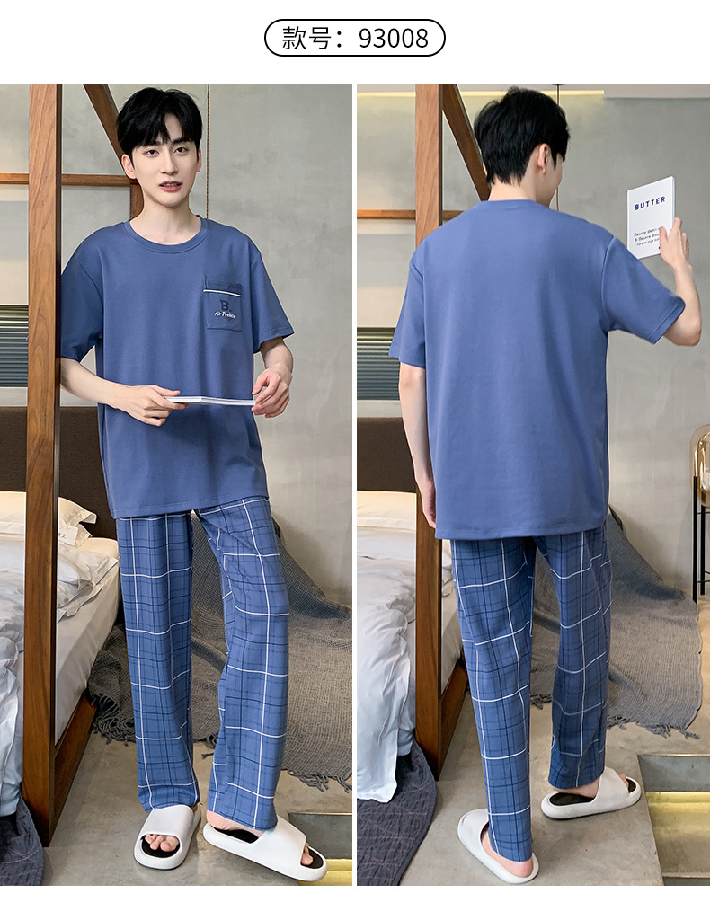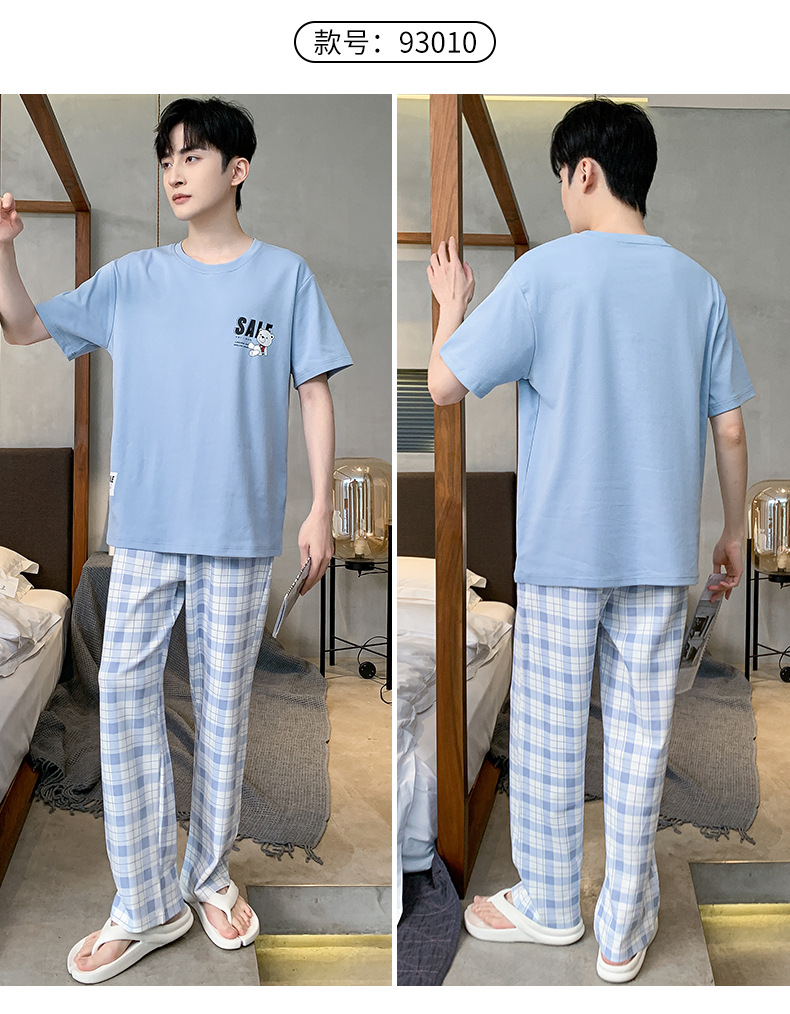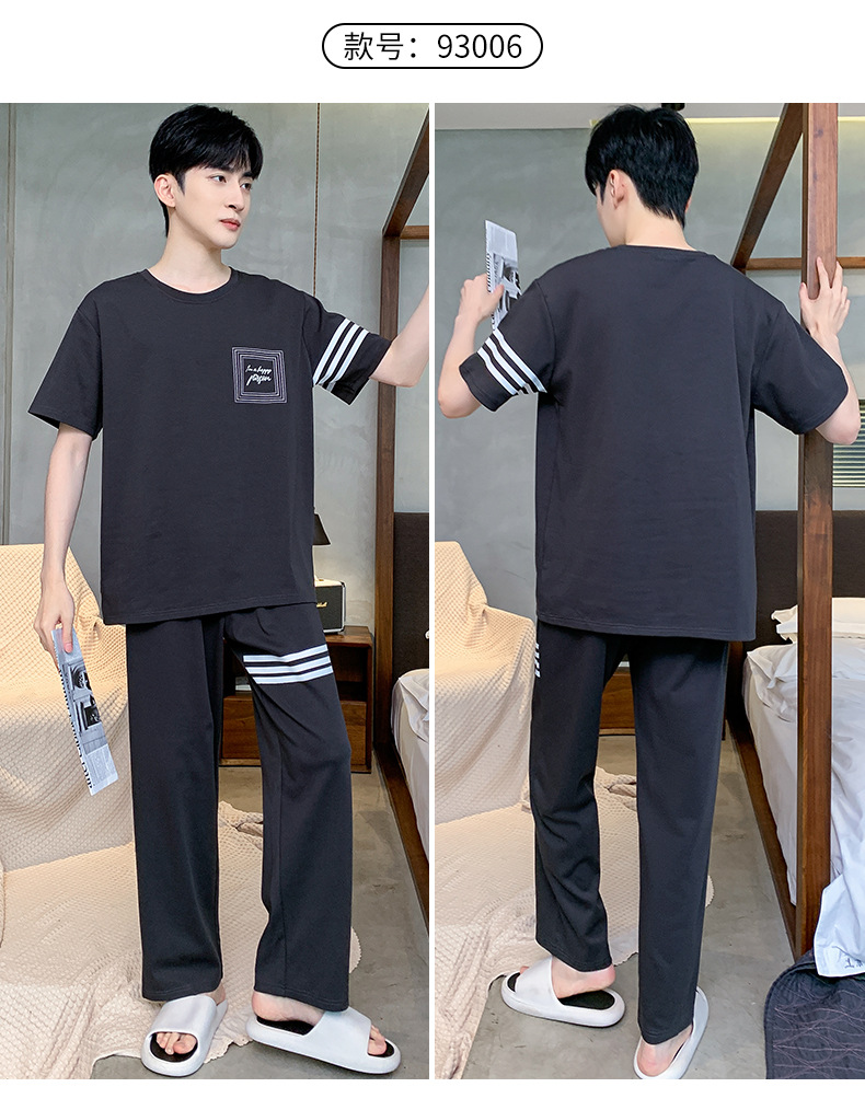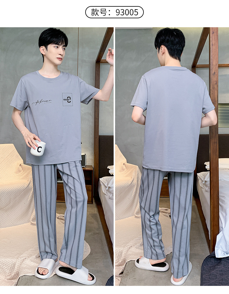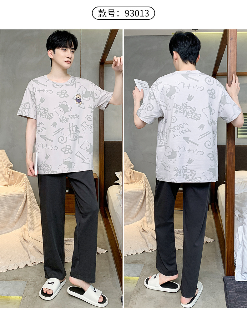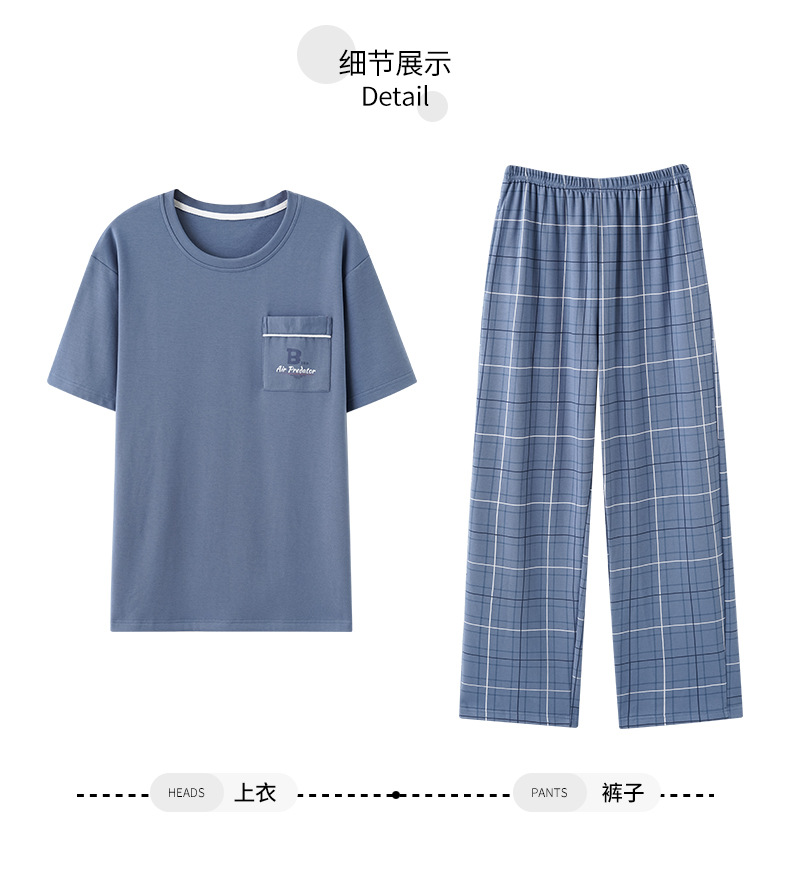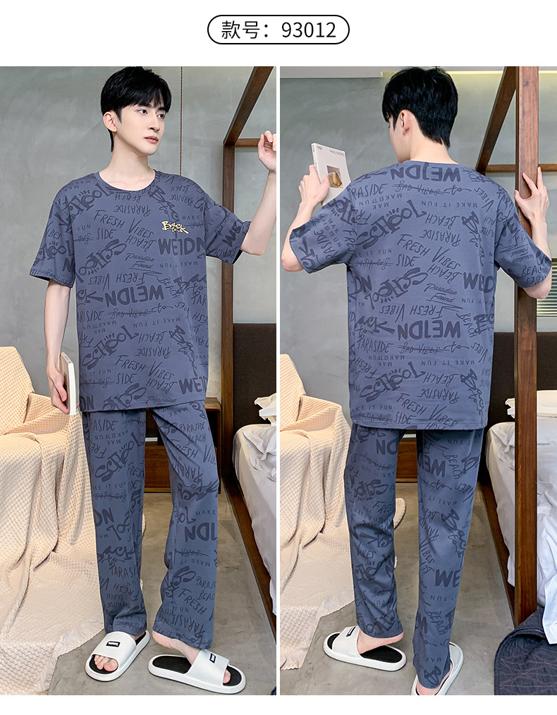 純綿男性パジャマ夏の新型丸首カジュアルサイズは綿半袖ズボンの家庭服セットを着ることができます。