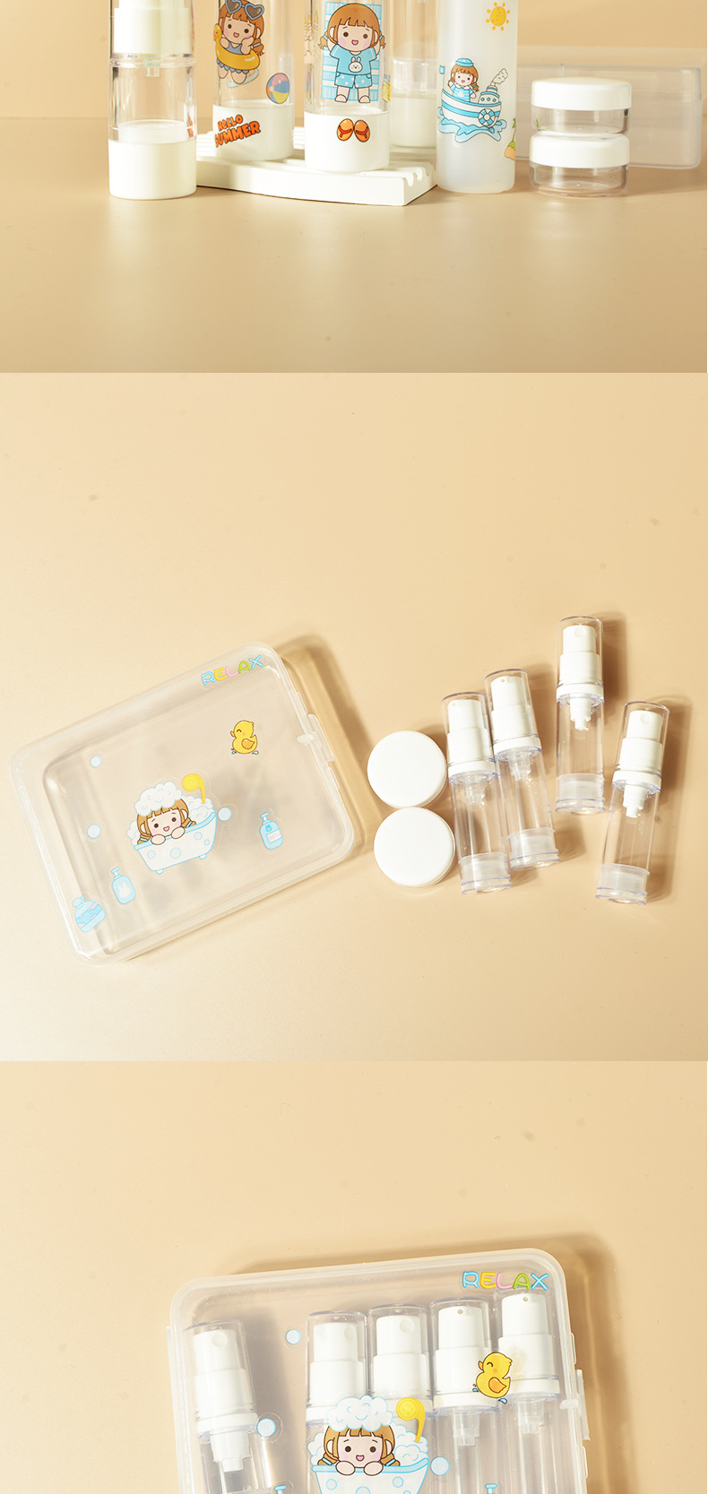 【セット1】ローションボトル30ml×5本,【セット2】ローションボトル30ml×4本 スプレーボトル×1本,【セット3】ローションボトル30ml×3 スプレーボトル×2,【セット4】ローションボトル30ml*2 スプレーボトル*3,【セット9】ローションボトル10ml*2 スプレーボトル*2,【セット10】化粧水ボトル10ml*2、スプレーボトル*1、クリームボトル*3,【セット5】30mlローションボトル*2、スプレーボトル*2、フリップトップボトル*1、クリームボトル*1,【セット8】ローションボトル10ml×4本,【セット6】ローションボトル5ml*5,【セット7】ローションボトル5ml*3 スプレーボトル*2,白くて透明