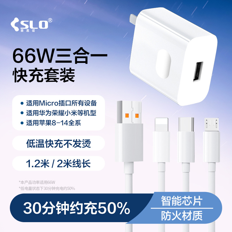 赛思诺66w一拖三适用苹果华为type手机usb充电器三合一快充套装TG
