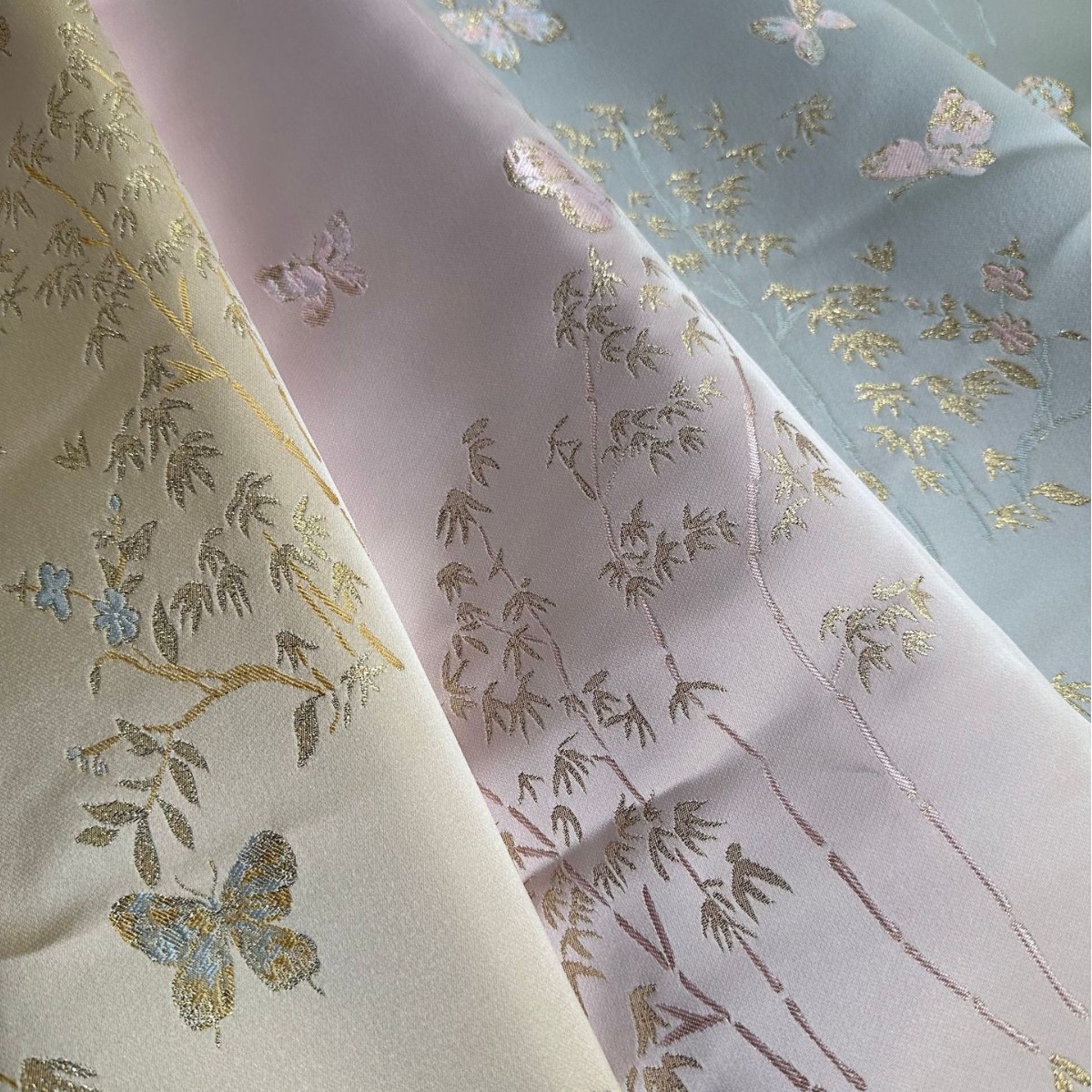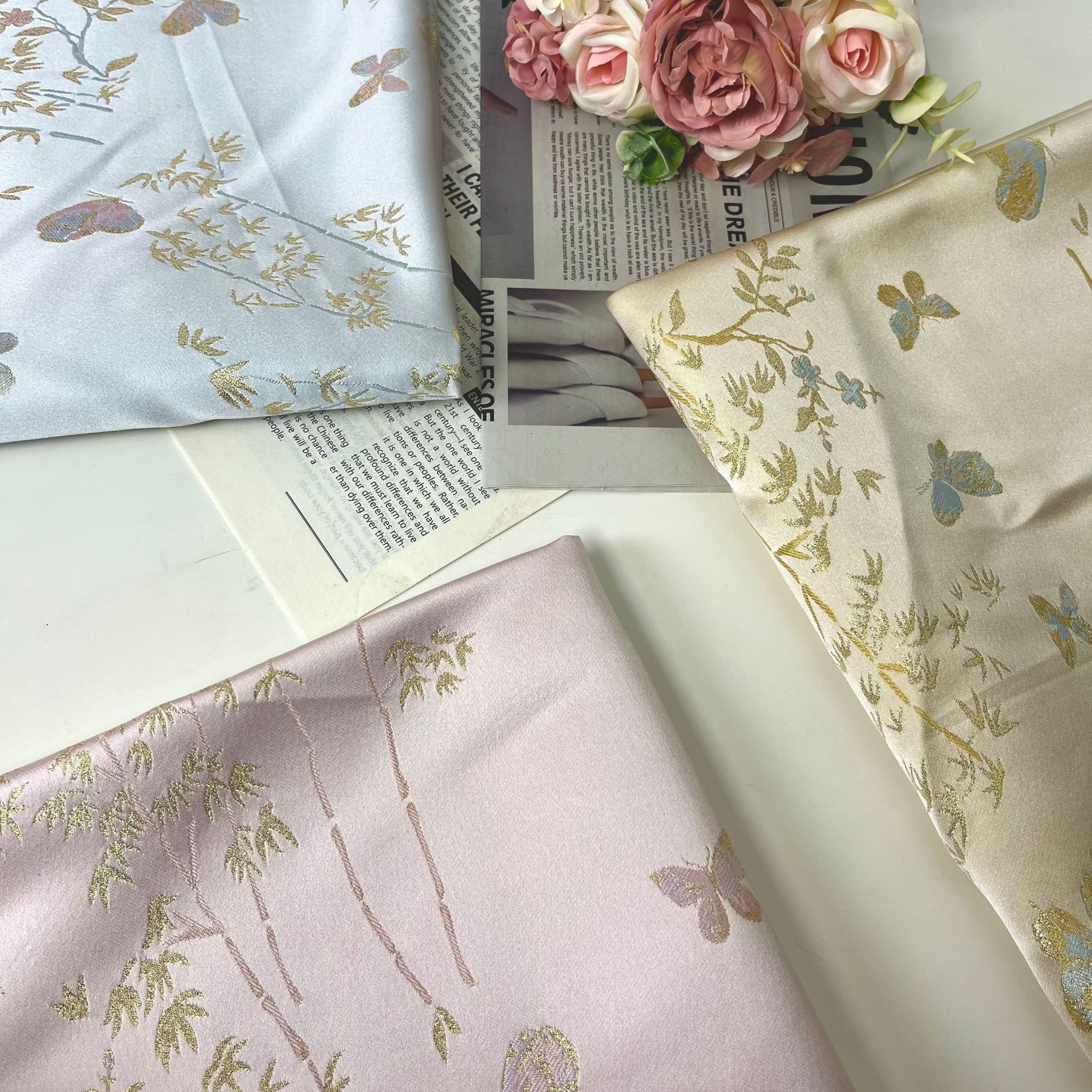 国風竹林飛舞蝶絹織物金糸ジャカード生地女装チャイナドレスワンピース馬甲コートファッション