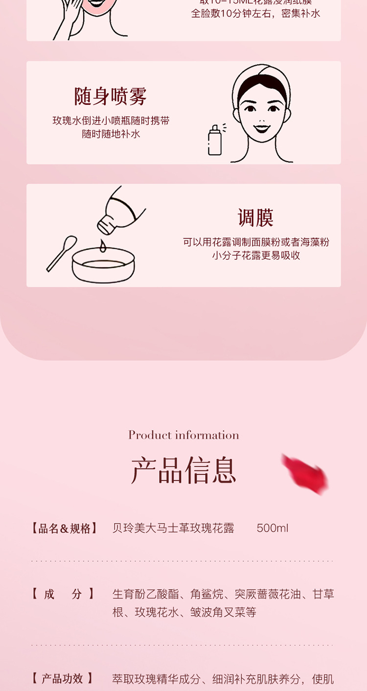 貝玲美ダマスカスのバラの純露は水を補って保湿して保護します。