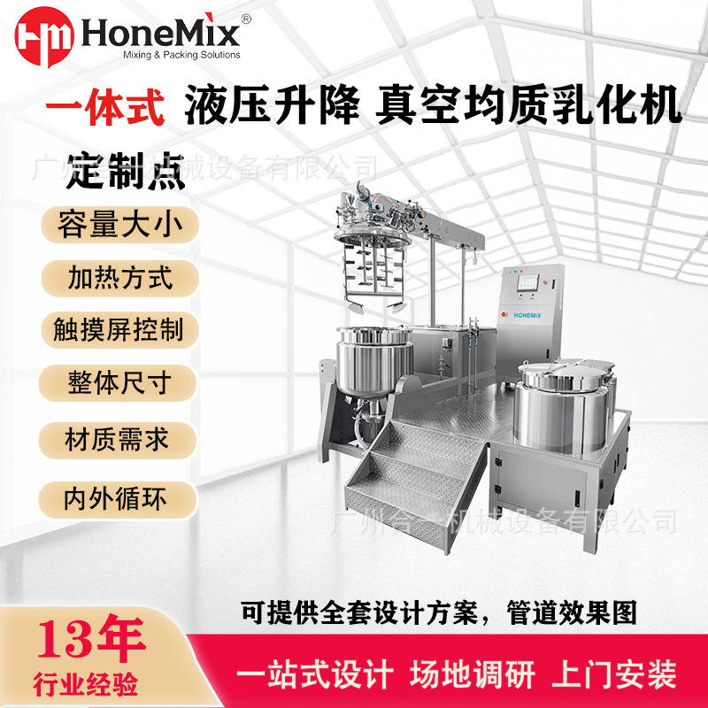 メーカー直販油圧昇降乳化機クリームペースト生産タンク真空均質攪拌乳化鍋
