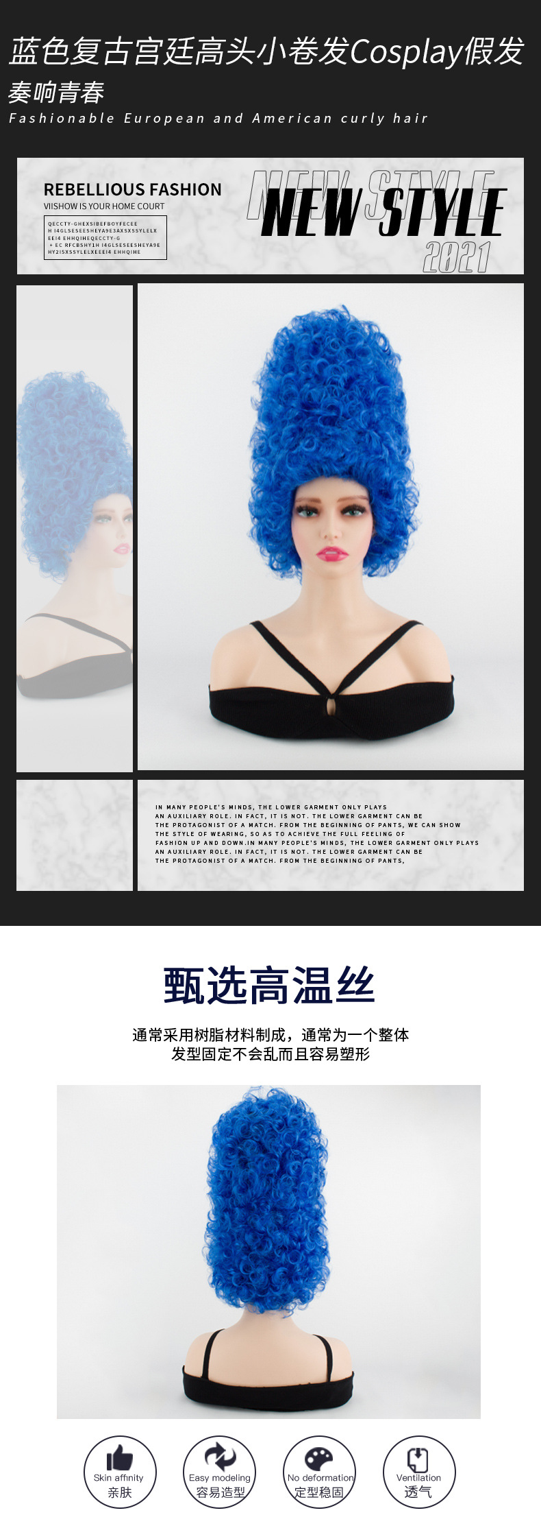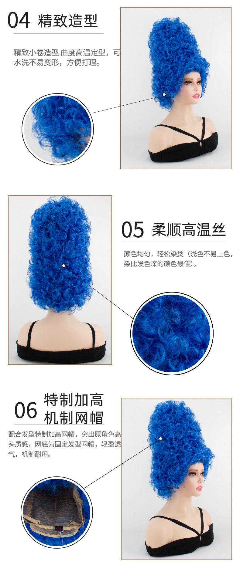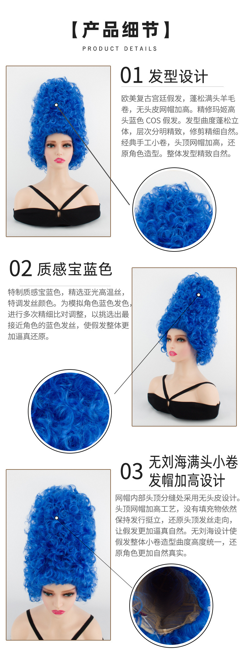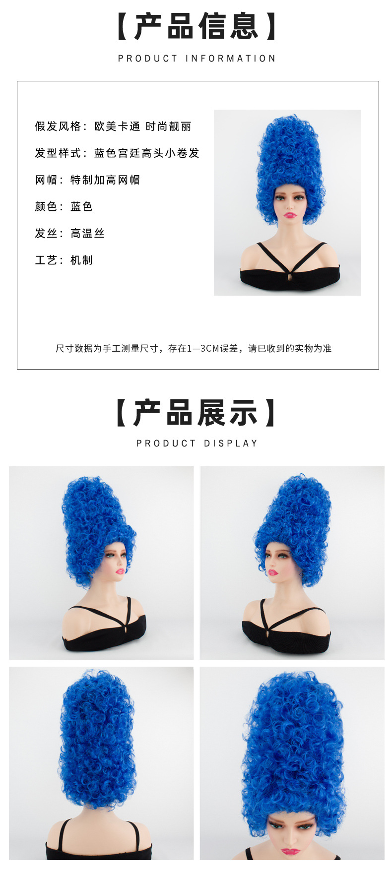 クロスボーダーマギーシンプソンコスプレかつら舞台ショーブルー小巻き髪レトロ宮廷プラス高かつら