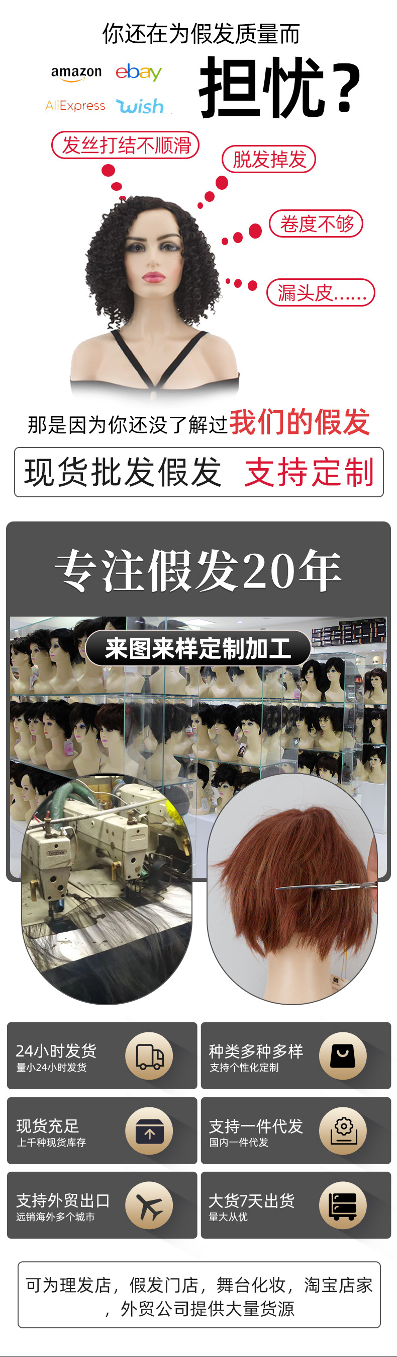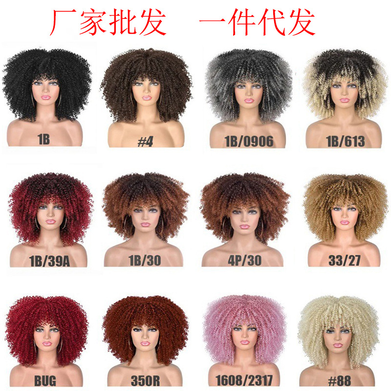 欧美跨境假发短卷发头套Afro curly hair高温丝女自然黑非洲小卷