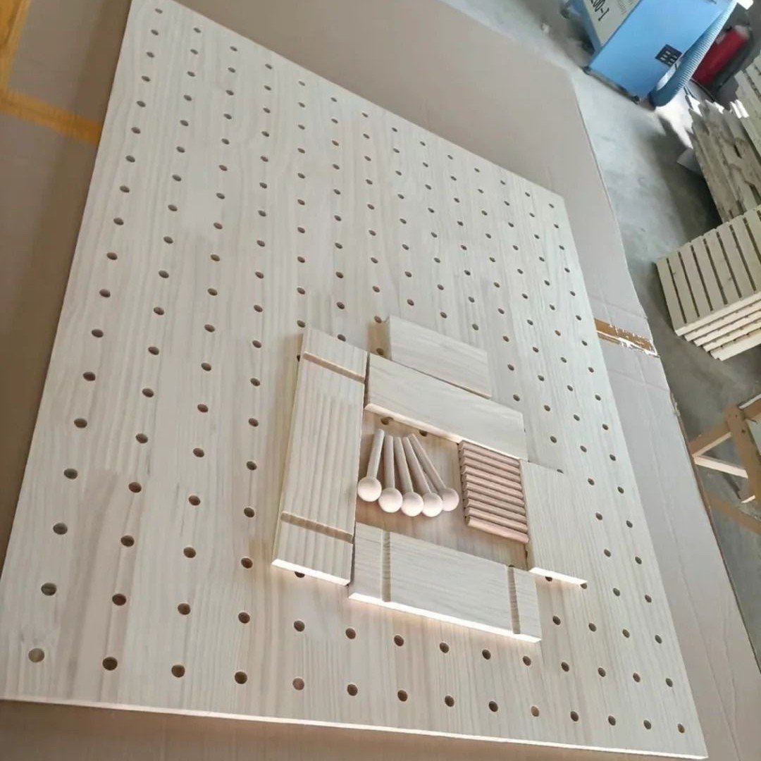 無垢材の穴あきボード、壁掛け装飾棚、アクセサリー、丸棒、マッチ棒収納