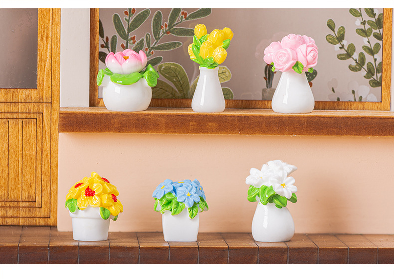 微景観置物シミュレーションバラの花の造花盆栽花瓶樹脂工芸品人形屋のデスクトップミニ置物