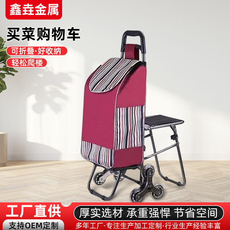 便携式买菜车折叠爬楼购物车带座椅小拉车老年人手拉车拉杆小推车
