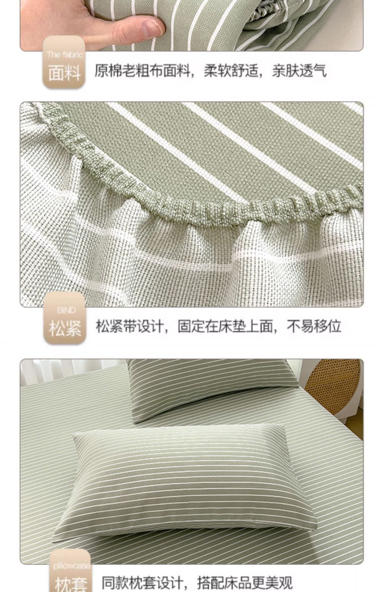古い粗布のベッドカバーの単品は全部包んで洗濯します。綿のベッドカバーの三点セットは厚いマットレス保護カバーの防塵カバーの三点セットです。
