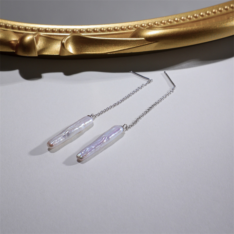 天然淡水真珠バロック耳糸純銀アクセサリー軽贅沢イヤリングs925純銀高級感卸売り耳飾り