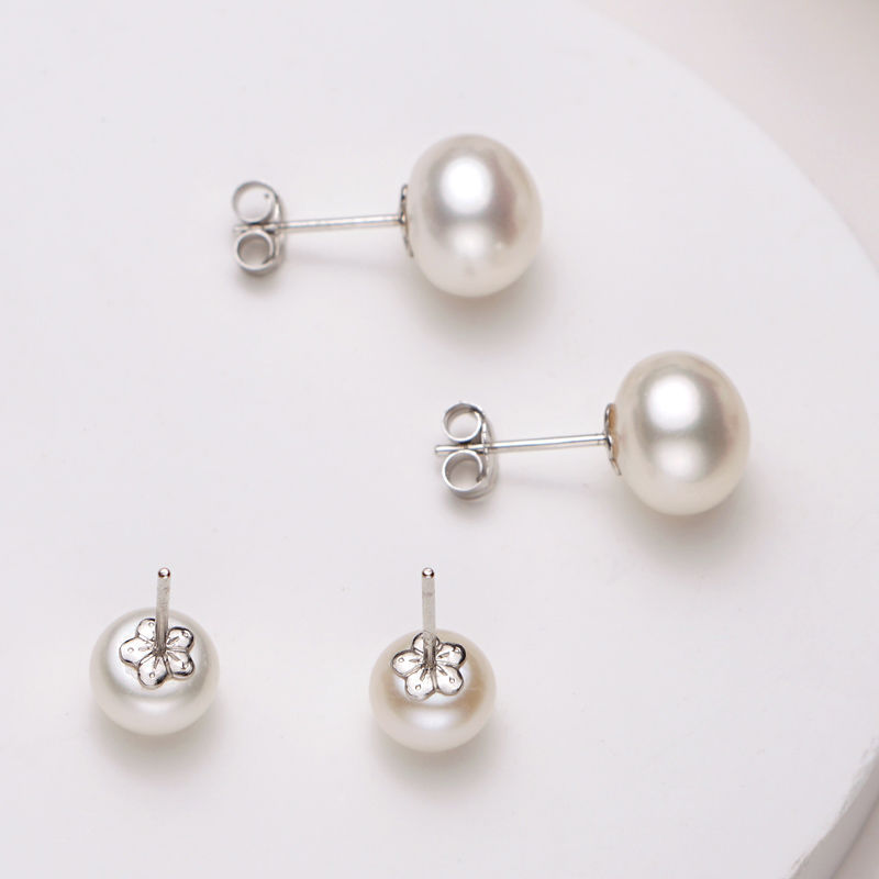 5A級正円強光天然淡水真珠ピアス高級感S925純銀基本無暇ピアス卸売り女
