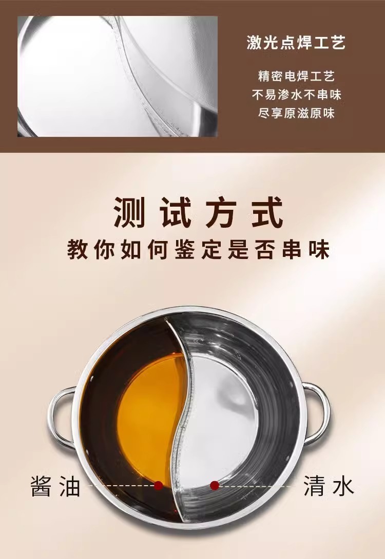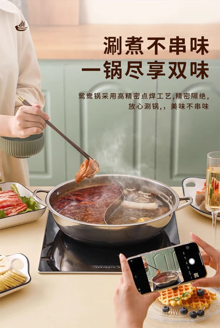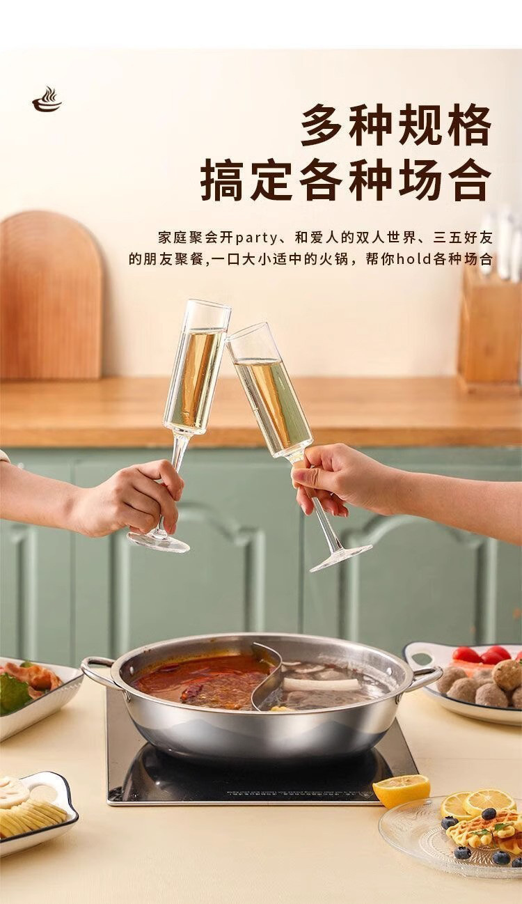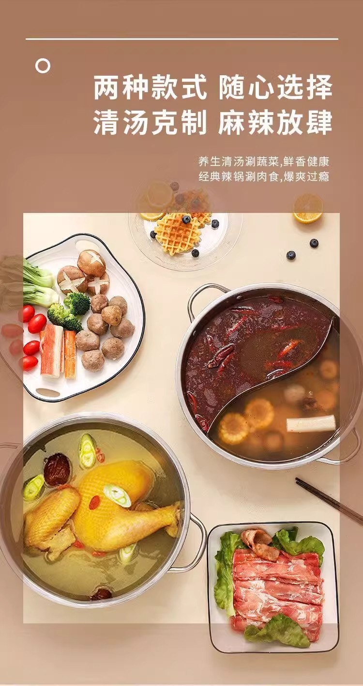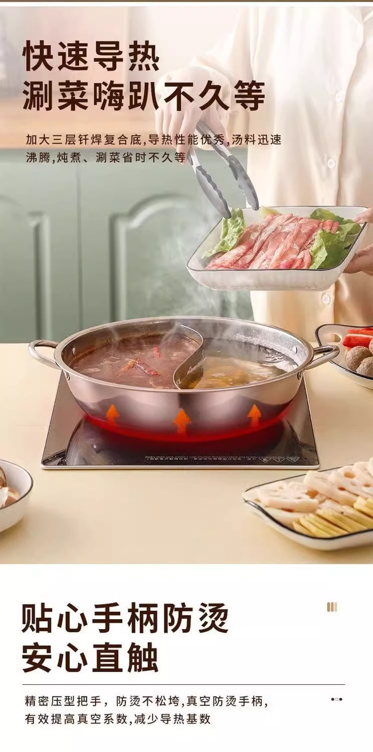 鸳鸯锅吃火锅锅具家用锅灶具通用火锅盆不锈钢打阴阳锅户外加热