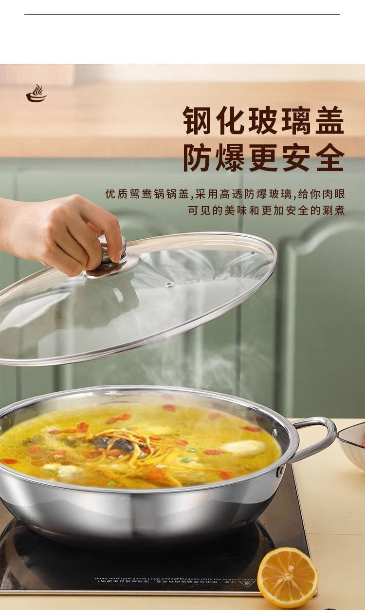 ステンレス鋼のオシドリ鍋、厚みのある大容量スープポット、家庭用しゃぶしゃぶストーブ、ユニバーサルポット、鍋メーカー卸売