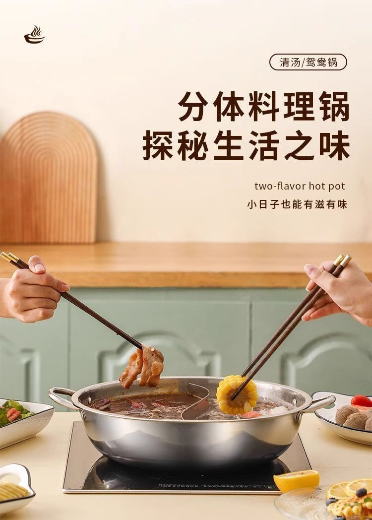 鴛鴦鍋、鍋、家庭用鍋、万能鍋、ステンレス陰陽鍋、屋外加熱