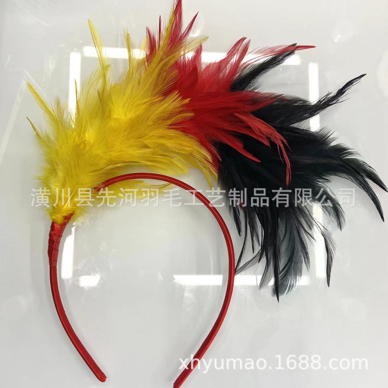 アマゾンの爆発的な羽のカチューシャパーティーの祝日の舞台で祝日の浮かれ騒ぎのアクセサリーを披露する